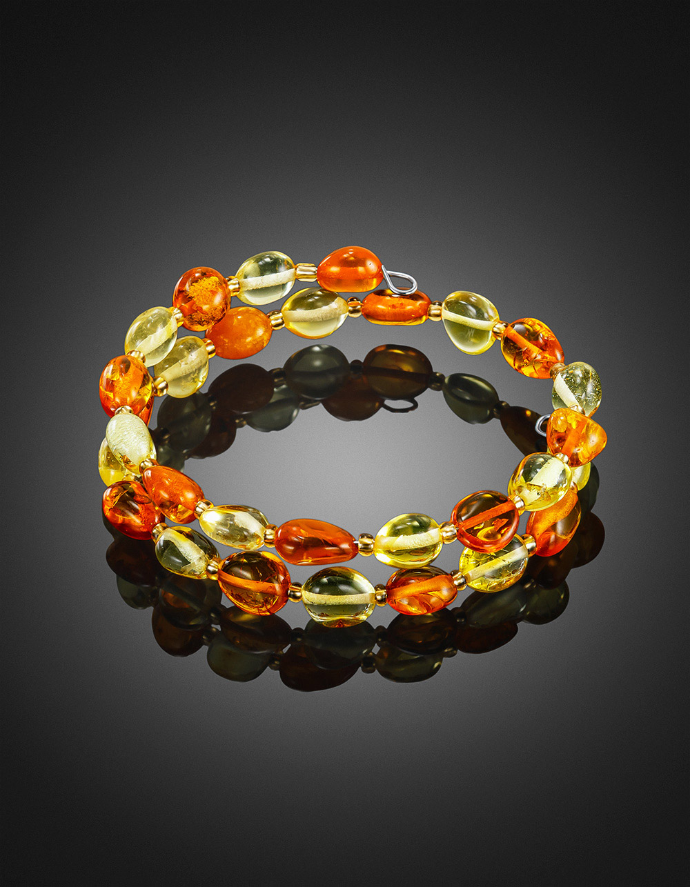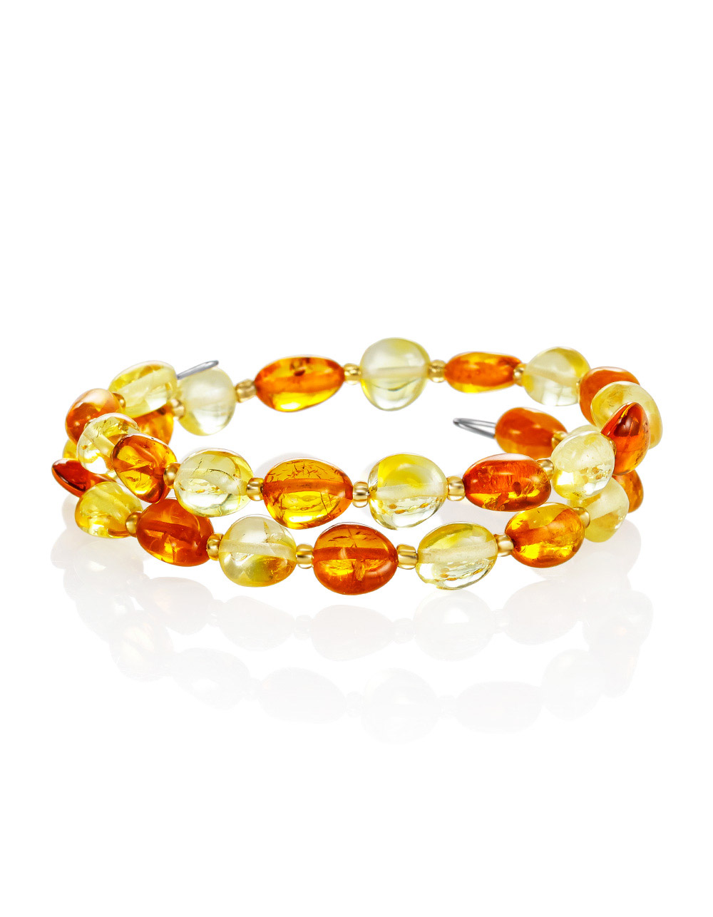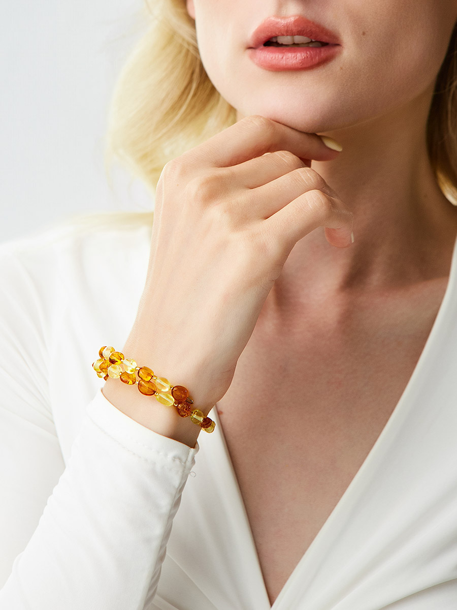 Браслет из натурального янтаря на двойной струне «Оливка солнечная»