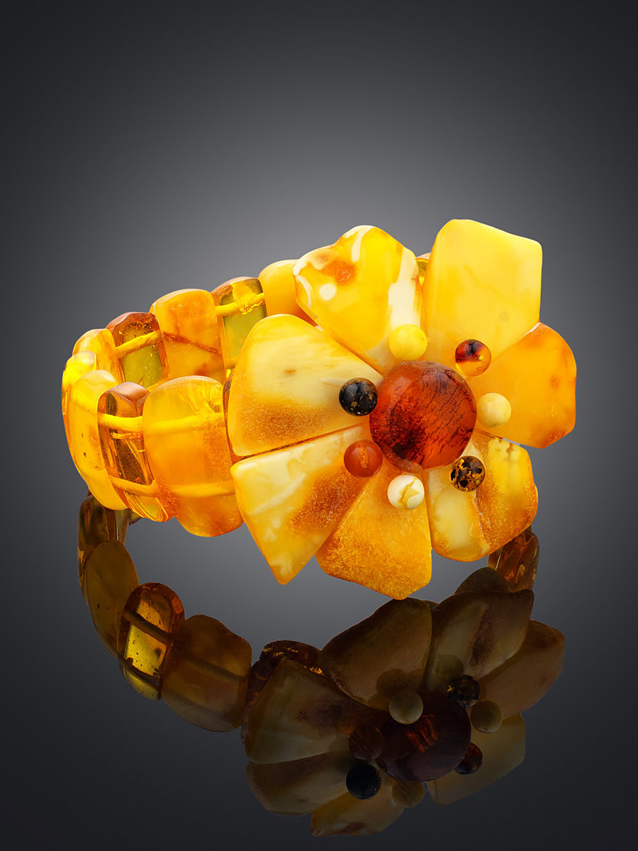 Браслет из натурального янтаря с природной текстурой «Шиповник»