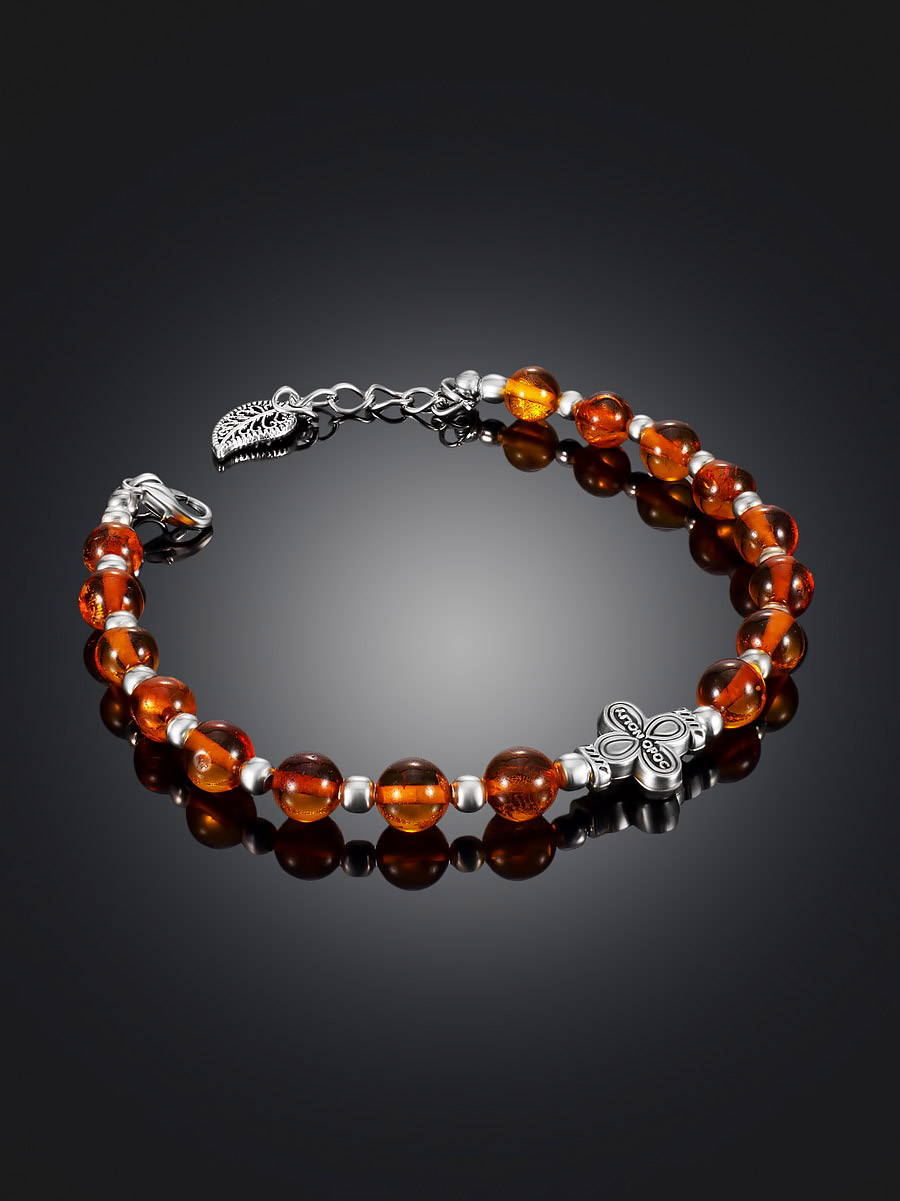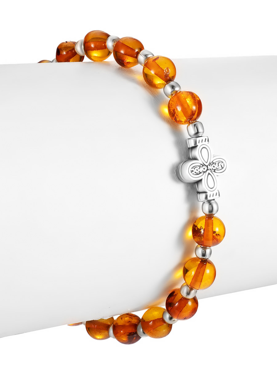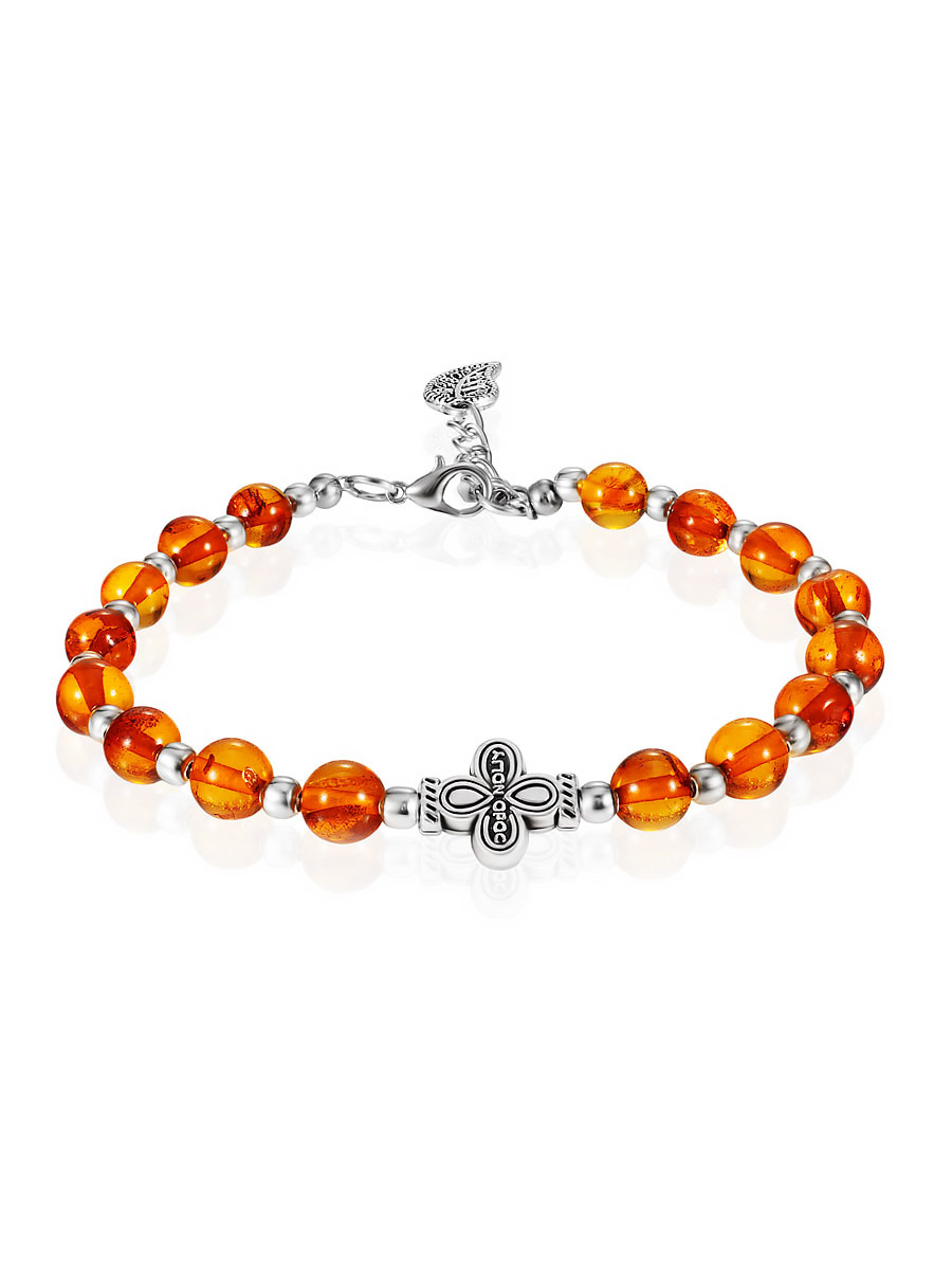 Браслет из натурального янтаря с вставкой-крестом