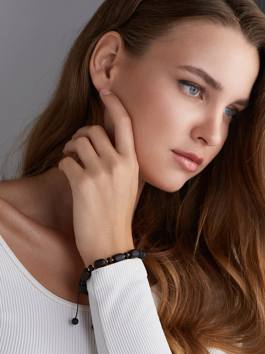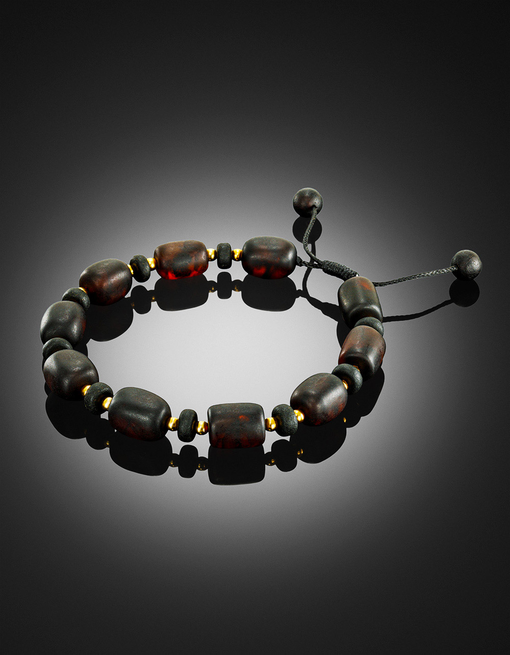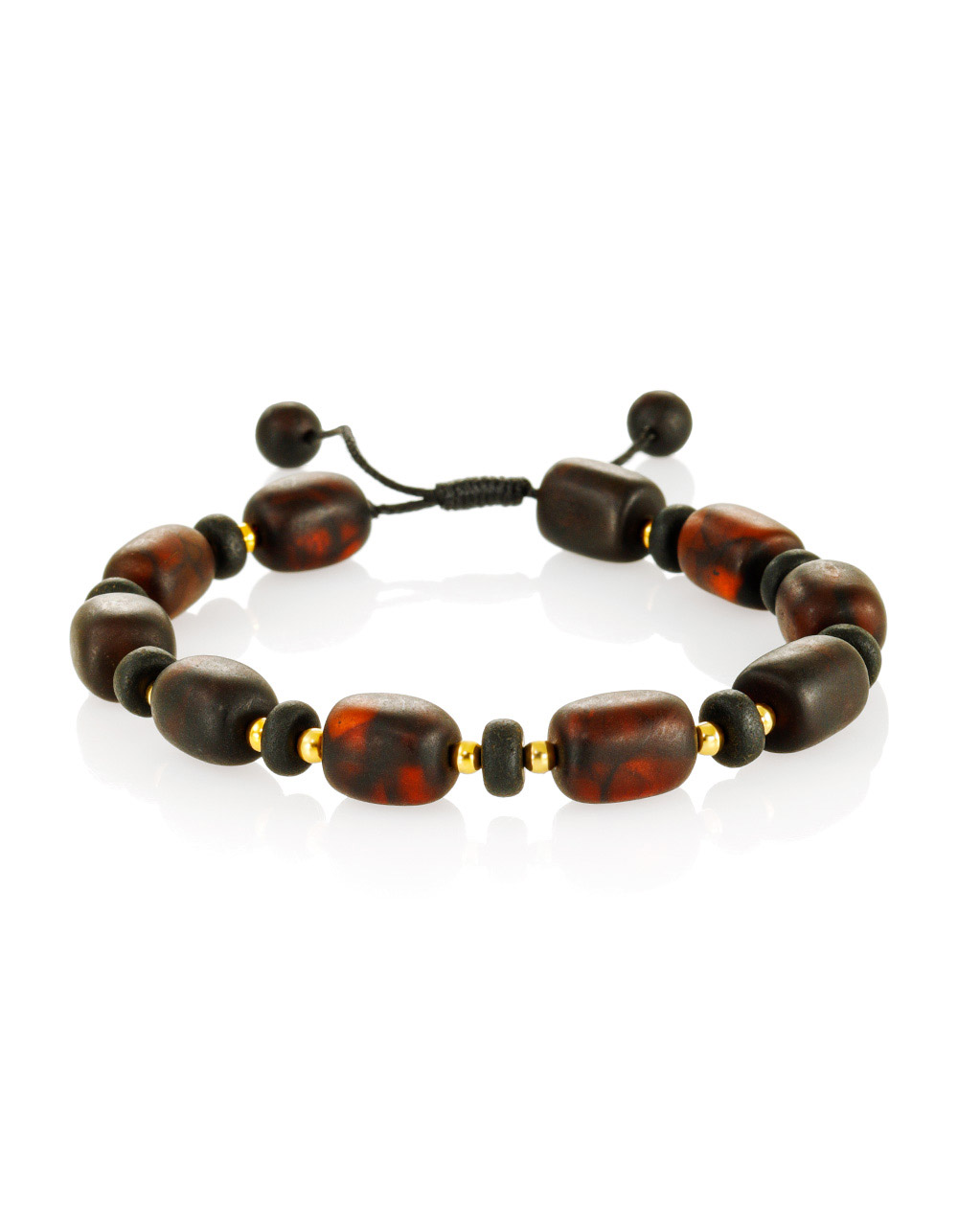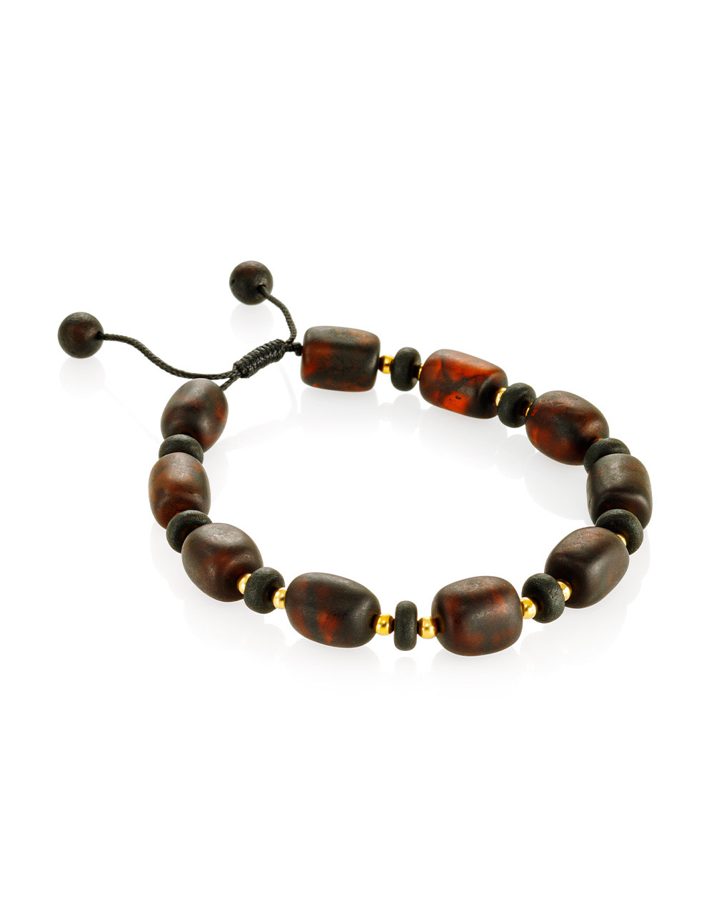 Браслет из натурального янтаря «Тёмно-вишнёвый сатиновый бочонок»