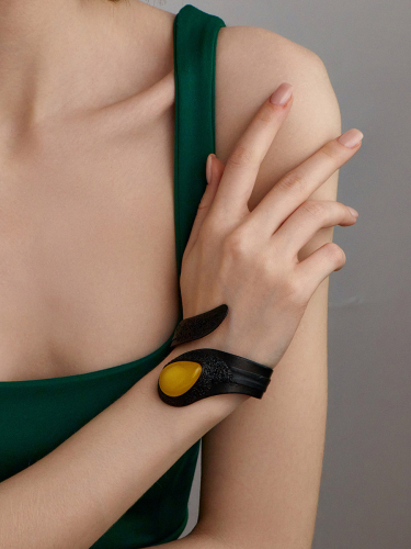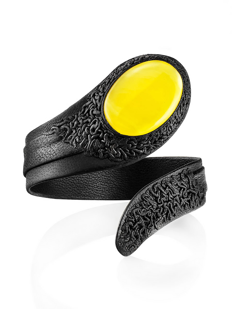 Браслет из натуральной кожи «Змейка», украшенный ярко-медовым янтарём