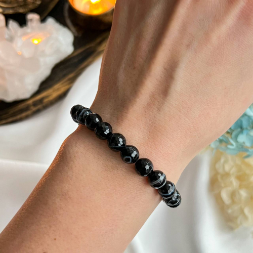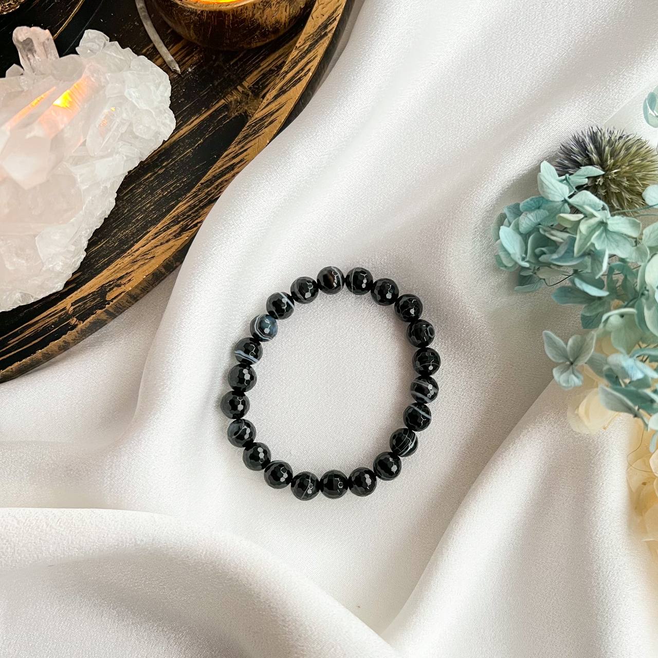 Цвет камня: Чёрный Месторождение:..показать Бразилия Камень: Агат Диаметр: 8 мм Поверхность: Граненый Производитель: Радуга Самоцветов (Россия) Тип замка: Резинка Бразилия