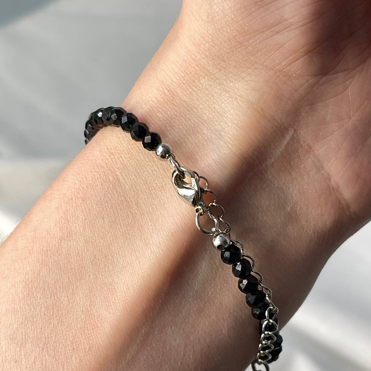 Радуга Самоцветов Браслет из Шпинели черной и Турмалина розового