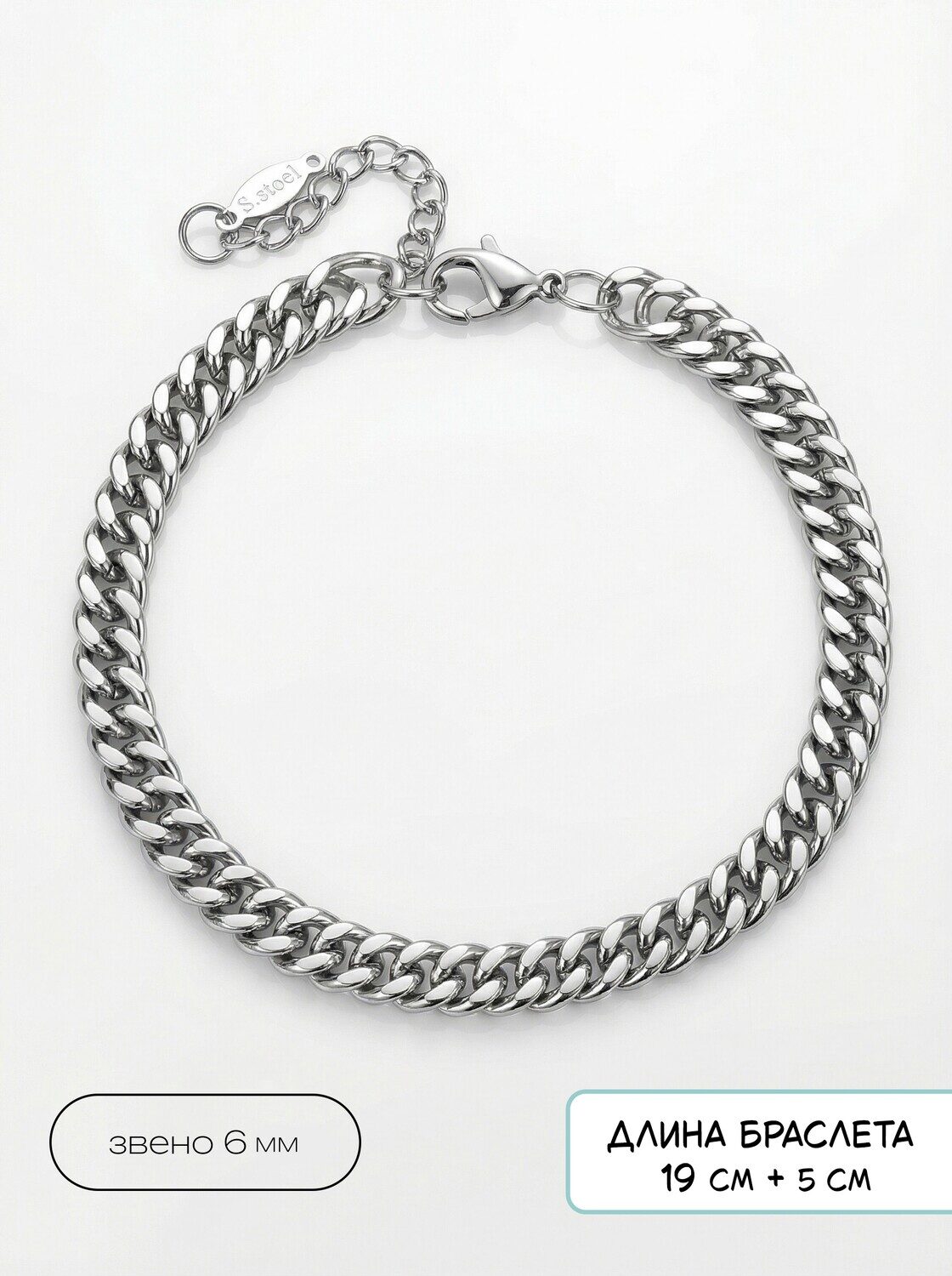Размер: 19 см + удлиняющая цепочка 5 смзвено- 6 мм