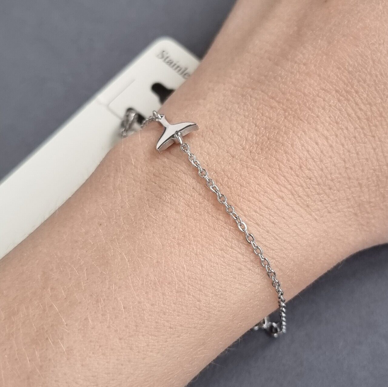 Описание Размер браслета: 16 (+3 см). Размер кулона: 1*1 см. Материал: ювелирная сталь.