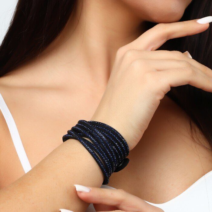 Браслет из страз широкий на руку, цвет: черный, вставка: стразы, цвет: синий, арт.001.763