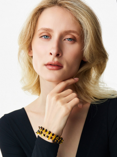 Браслет из янтаря на двойной струне «Облепиха двухцветная»