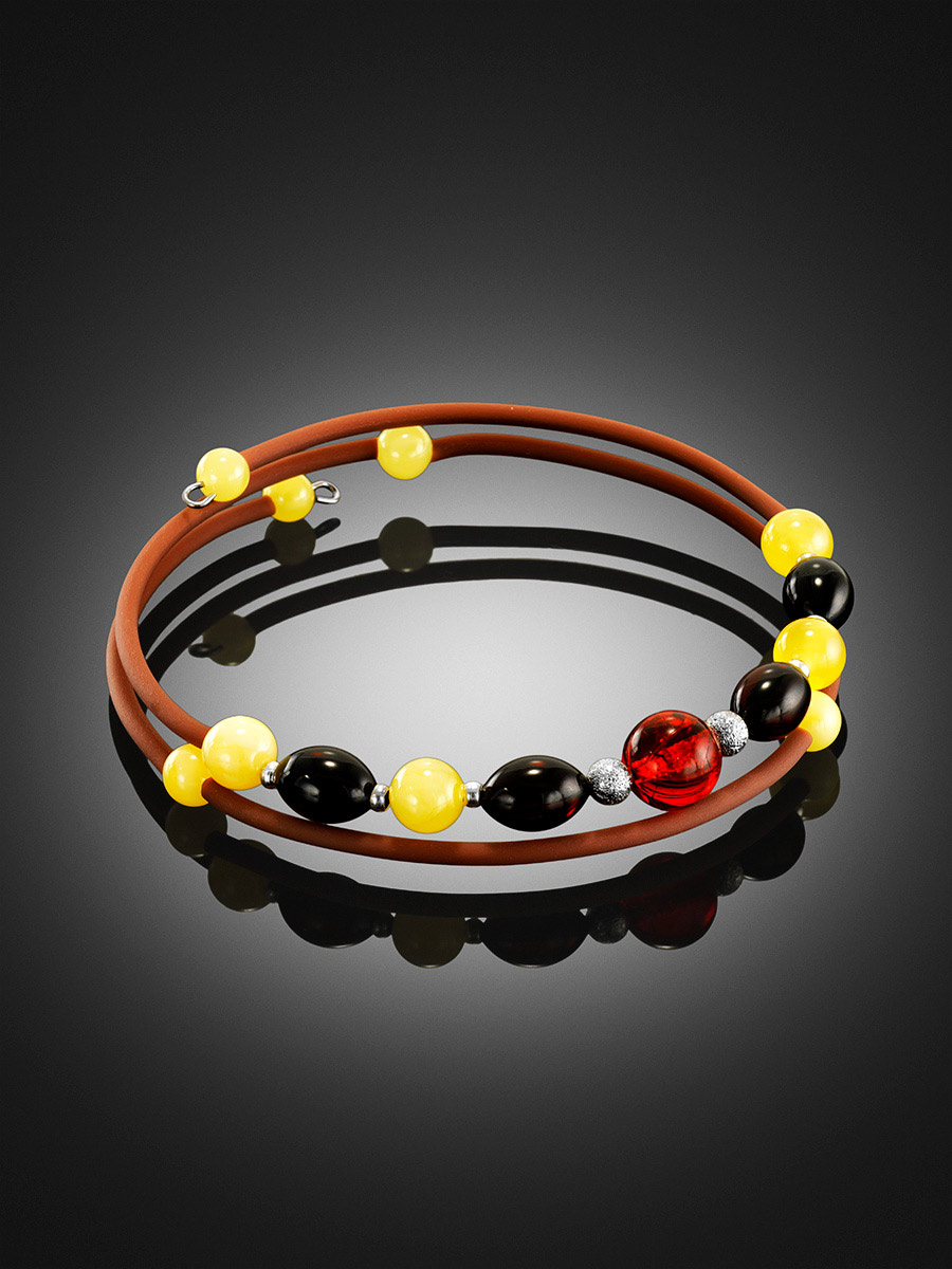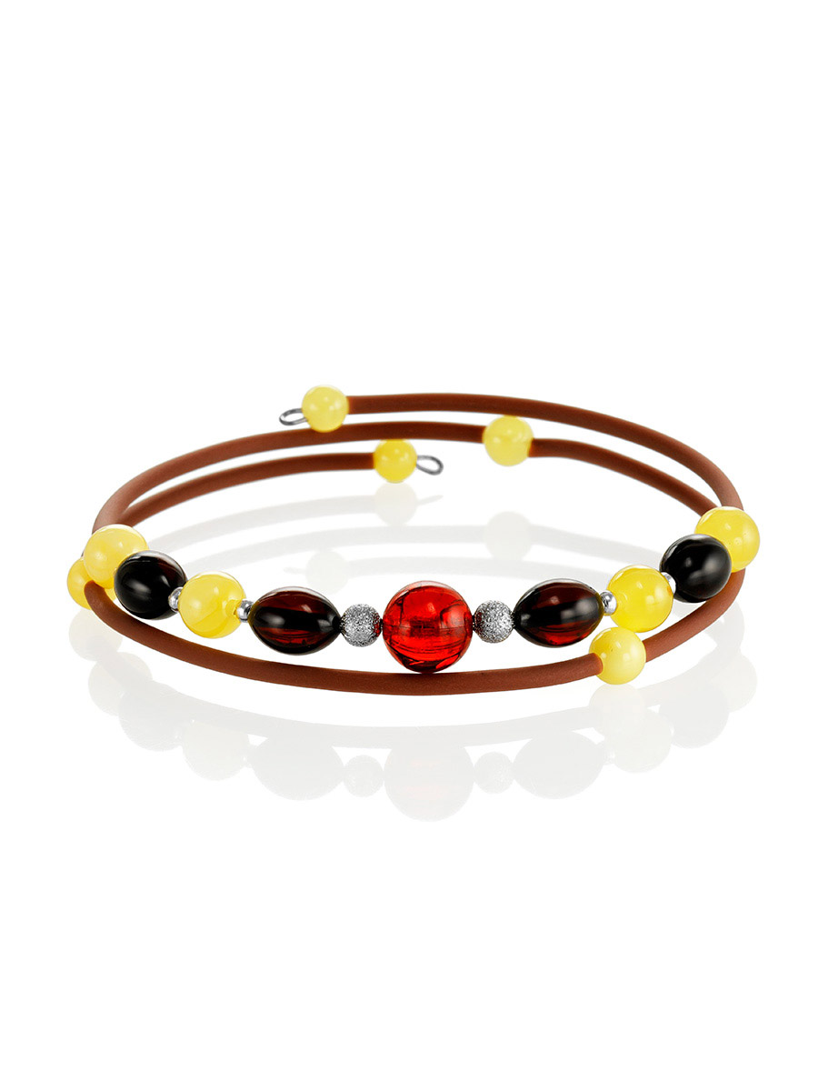 Браслет на каучуковой струне с натуральным янтарём разных оттенков «Оклахома»