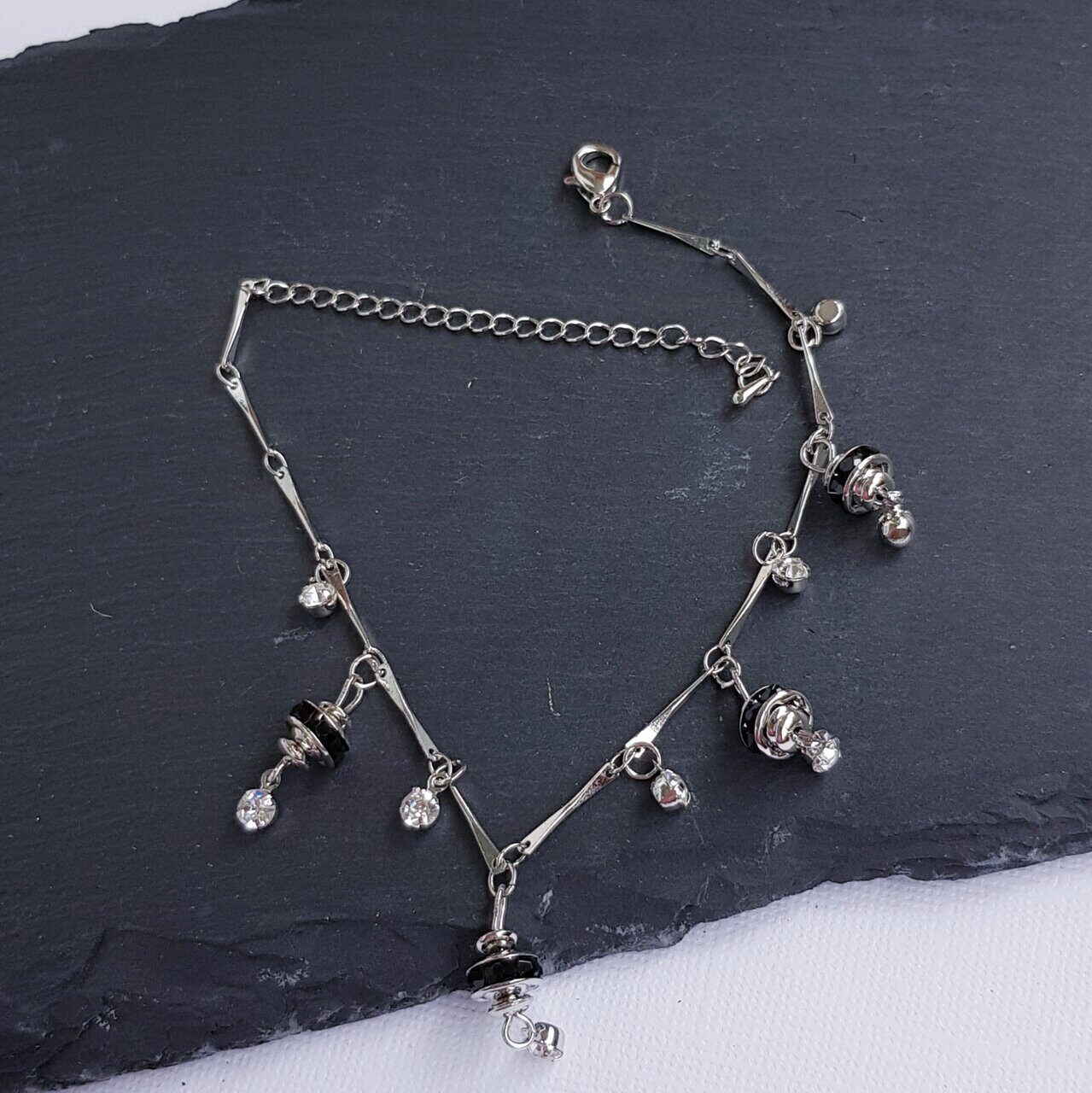 Браслет на ногу, цвет страз чёрный или тёмно-зелёный, арт.018.058