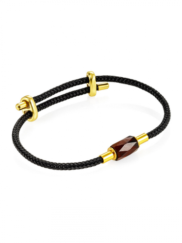 Браслет на плетёном шнурке с матовым янтарным бочонком