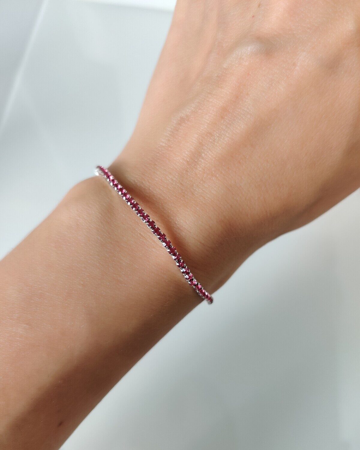 Этот стильный аксессуар изготовлен из специального гипоаллергенного ювелирного сплава, что обеспечивает комфорт при носке и исключает аллергические реакции. Для вставки использованы стразы, которые придают браслету яркий и нарядный вид.