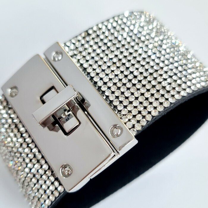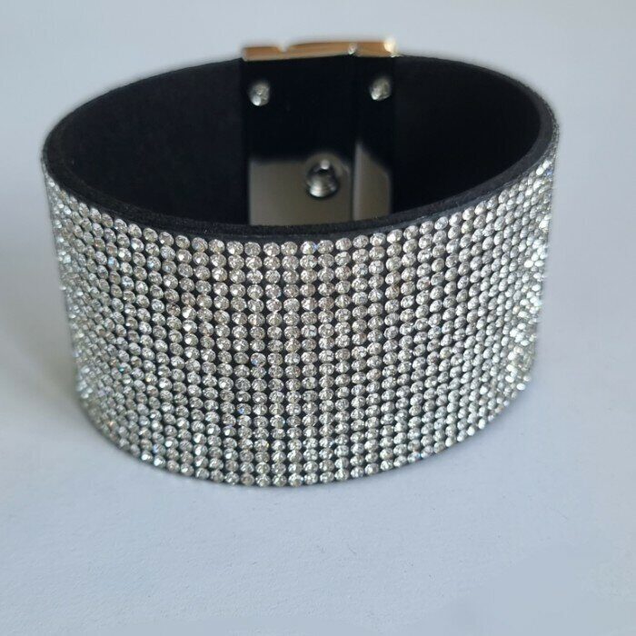Описание Длина браслета: 19,5 см, ширина браслета: 3,8 см. Состав: текстиль, стразы. Вес: 42 гр.