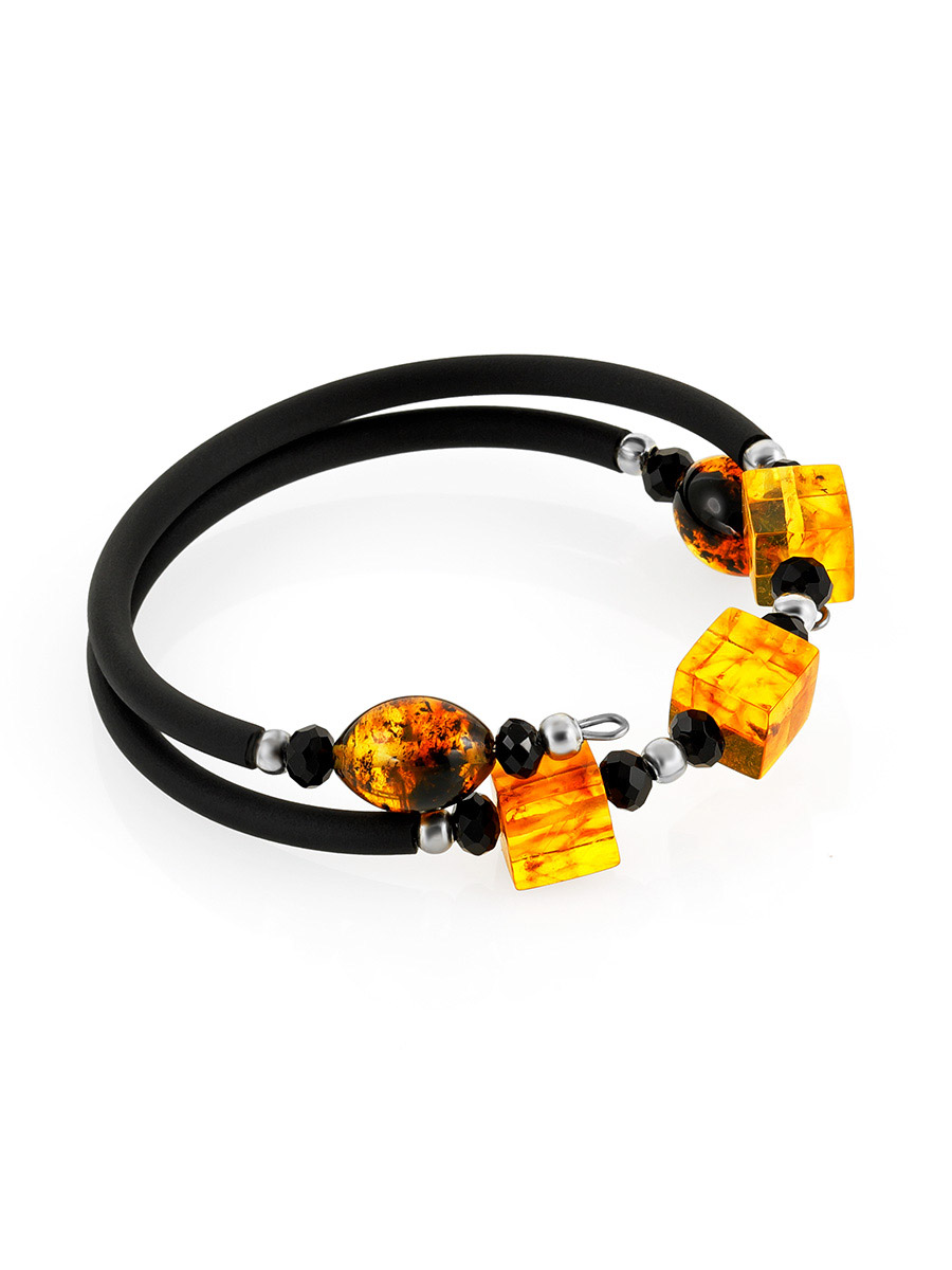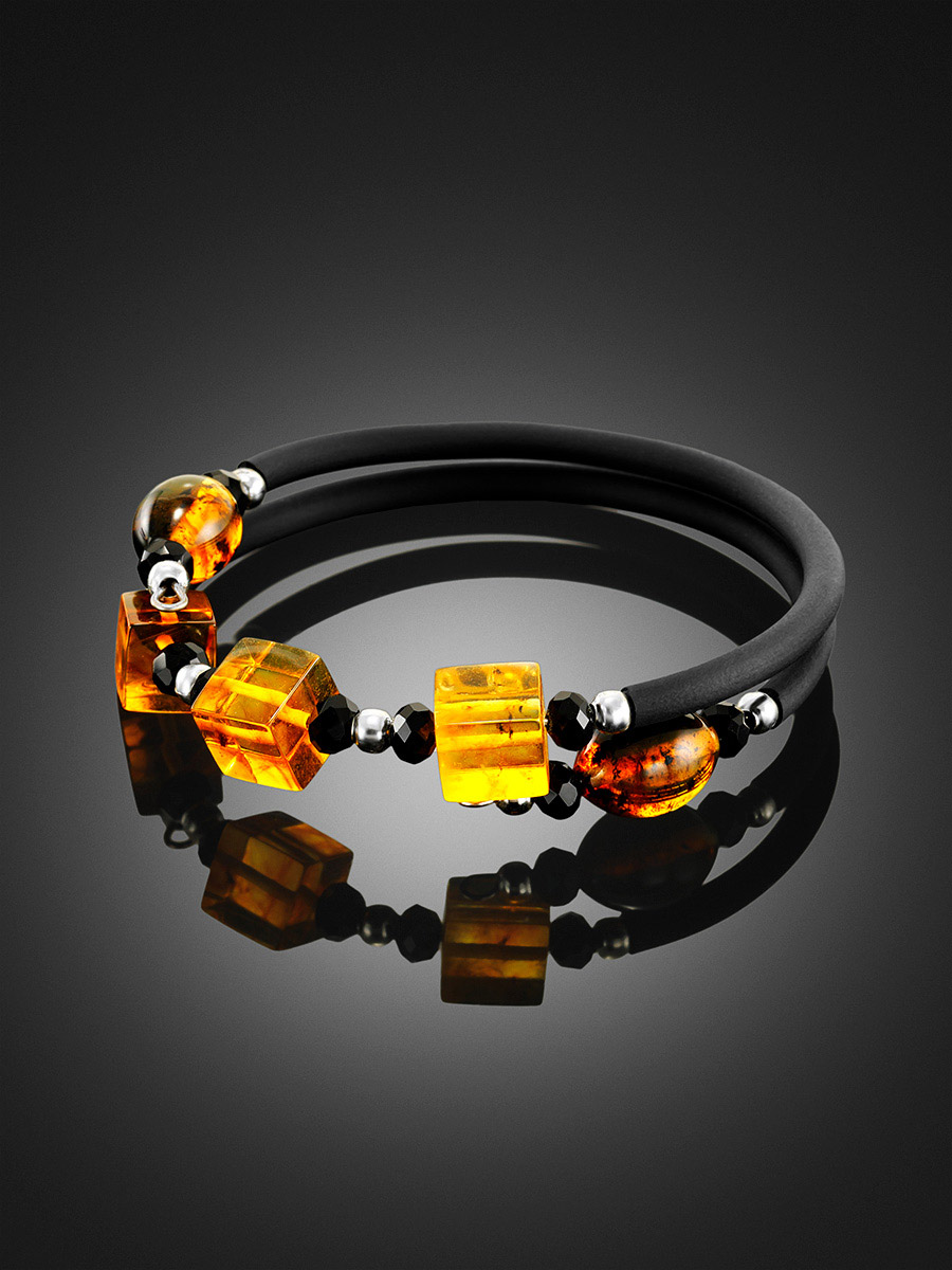 Браслет на силиконовой струне с натуральным формованным янтарём «Оклахома»