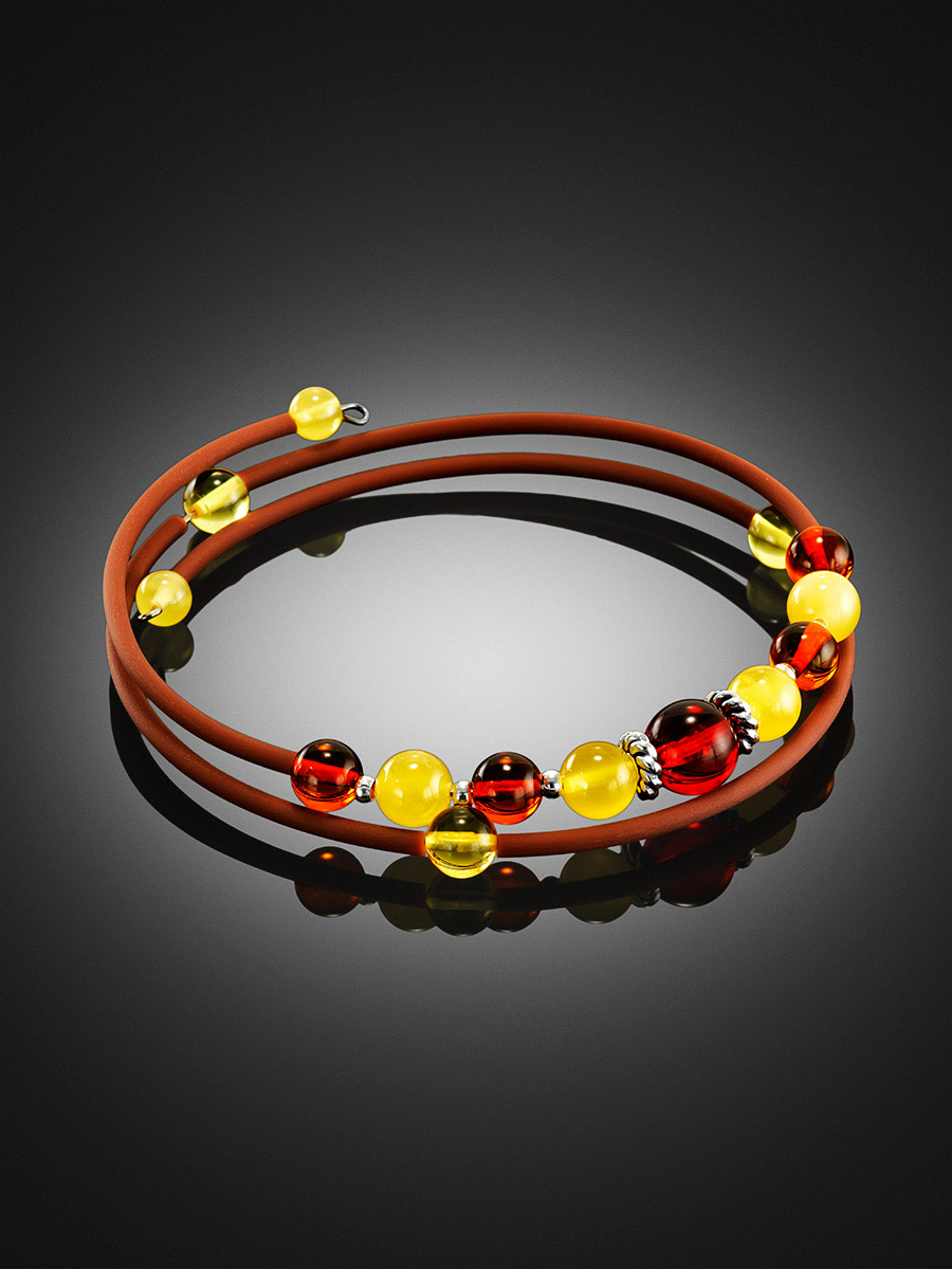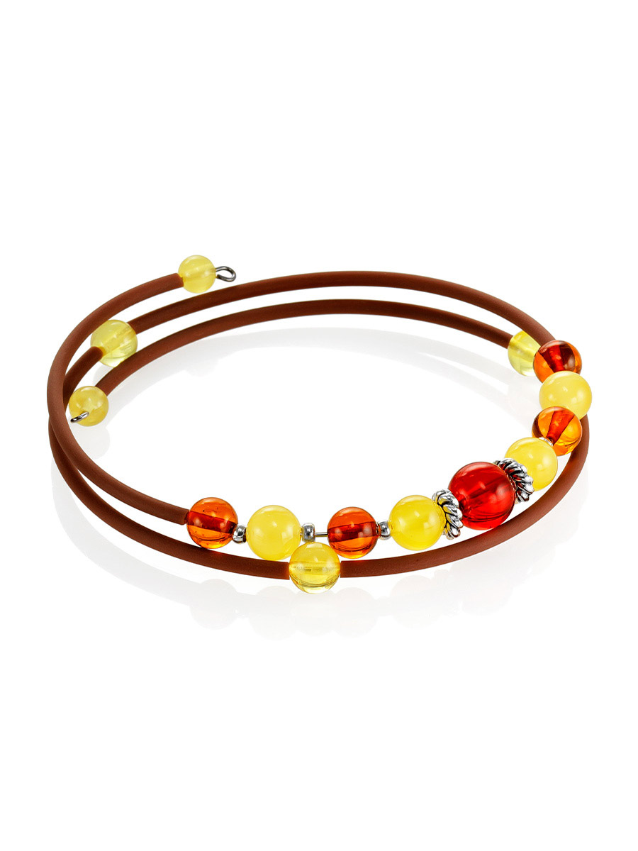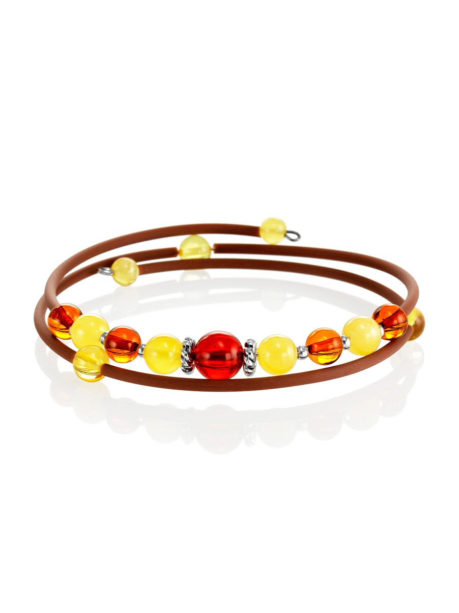 Браслет «Оклахома» на коричневой струне с янтарём разных оттенков
