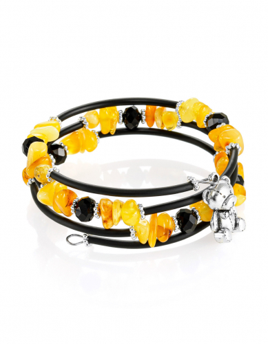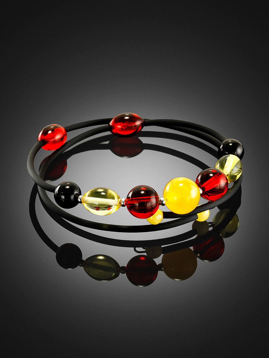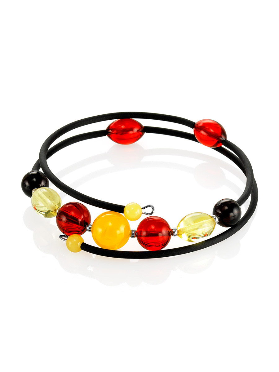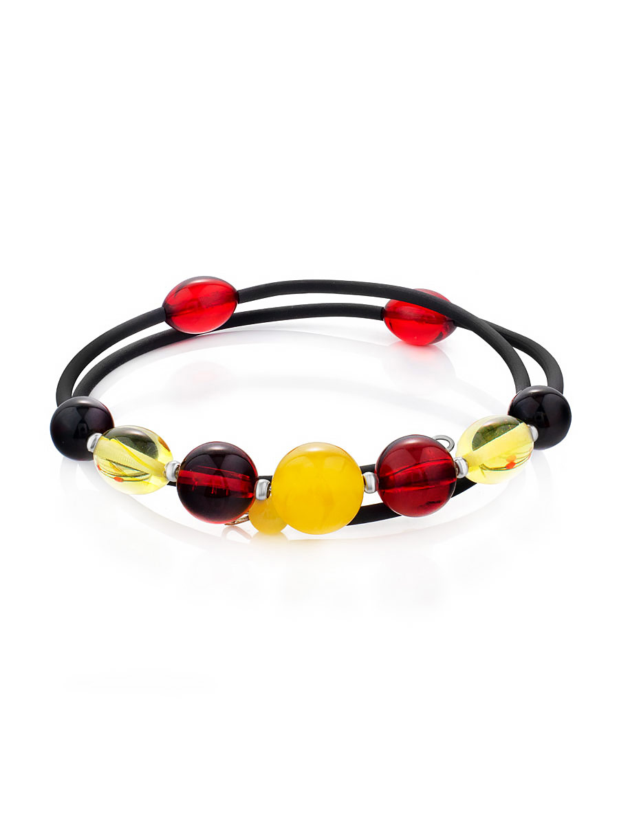 Браслет с натуральным янтарём разных оттенков на каучуковой струне без застёжки «Оклахома»