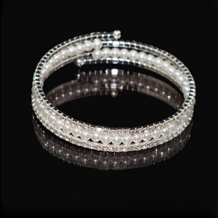 Браслет с жемчугом и стразами на руку многослойный, цвет: серебристый, вставка: иск.жемчуг и стразы, арт.001.913