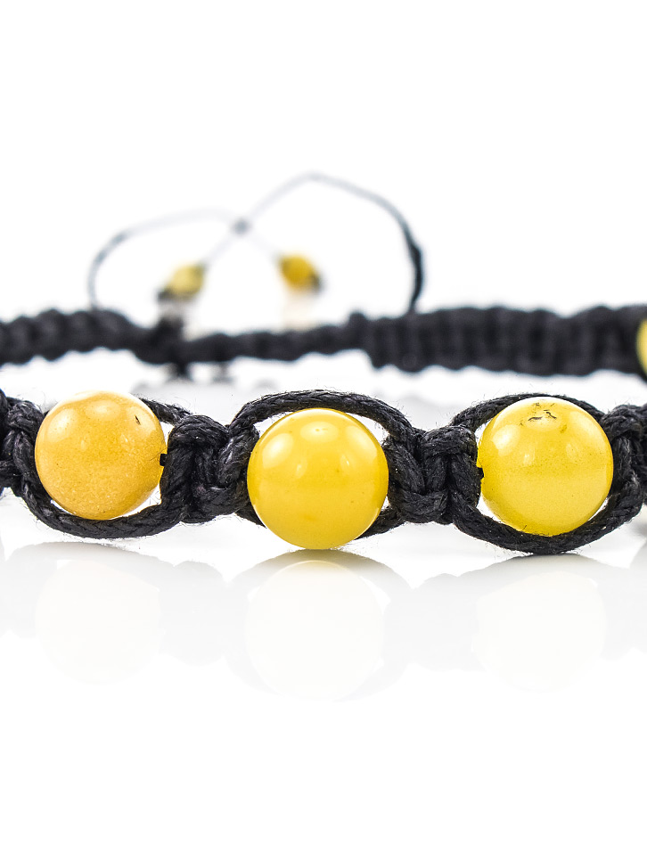 Браслет «Шамбала» с натуральным балтийским янтарём медового цвета