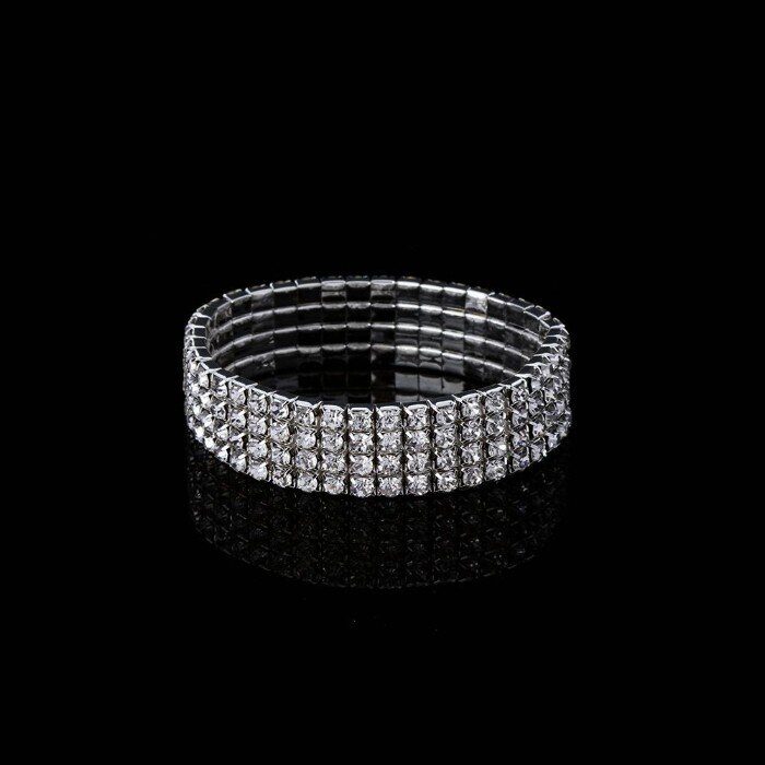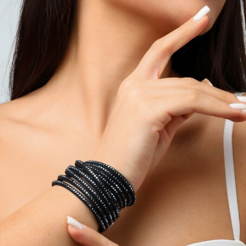 Браслет широкий на руку со стразами, цвет: серебристый, вставка: стразы, цвет: прозрачный переливающийся, арт.001.909