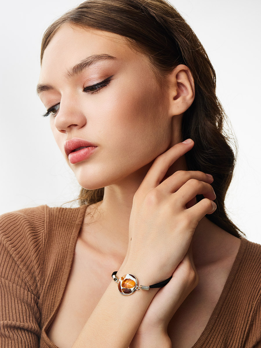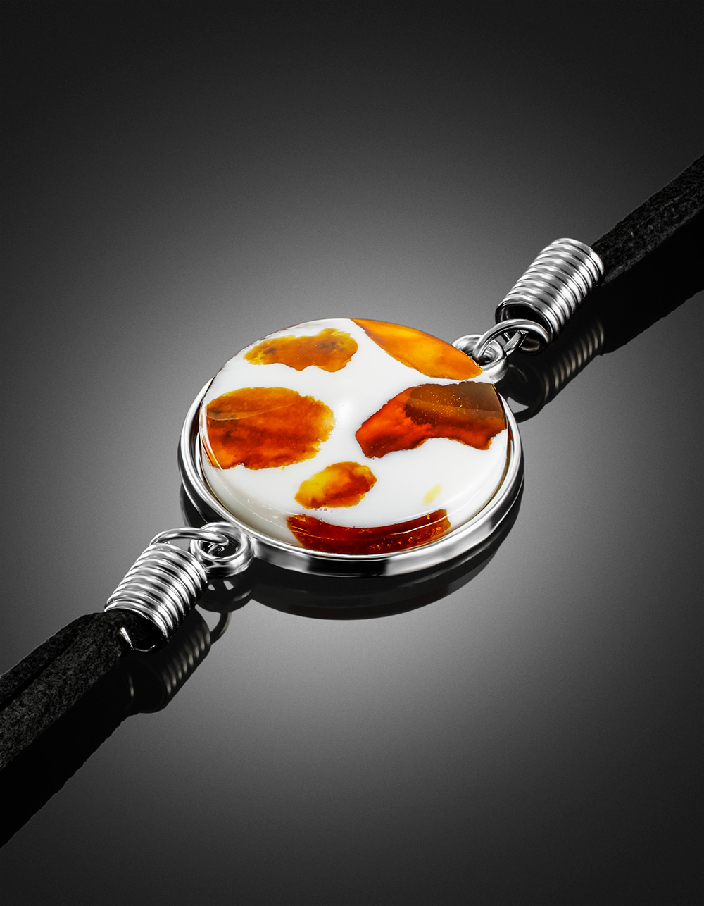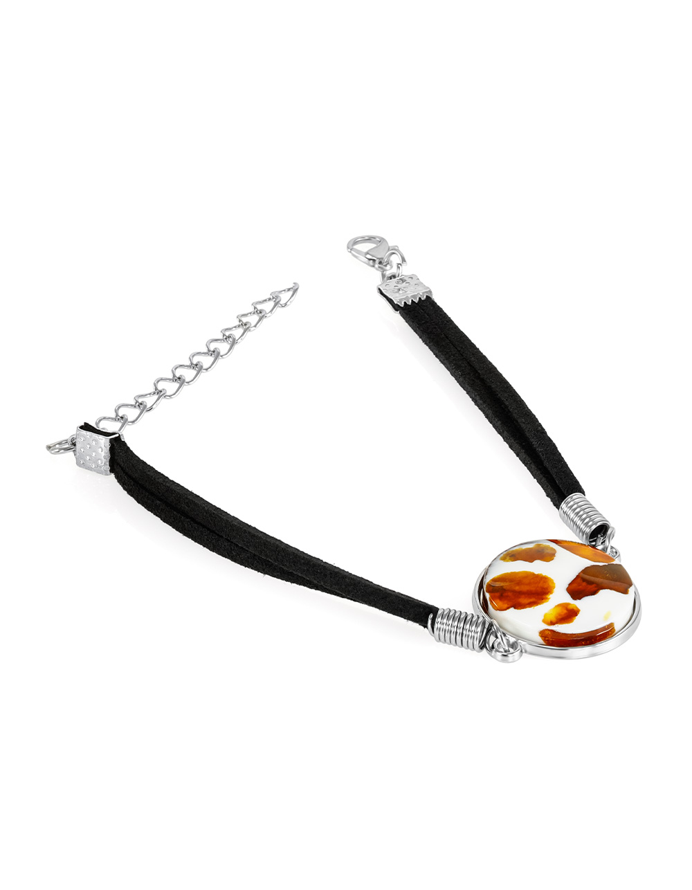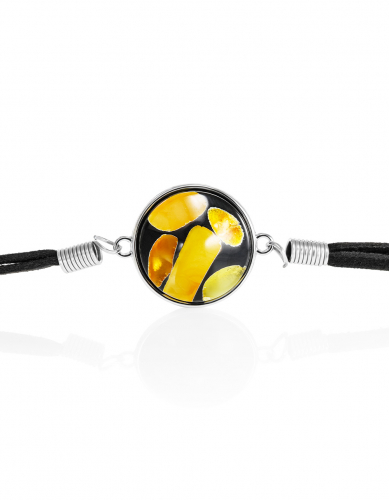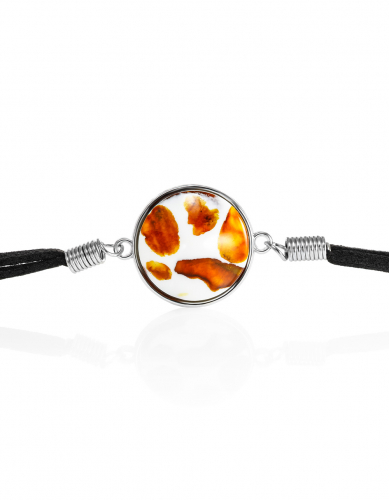 Браслет-шнурок с круглой мозаичной вставкой «Далматин»