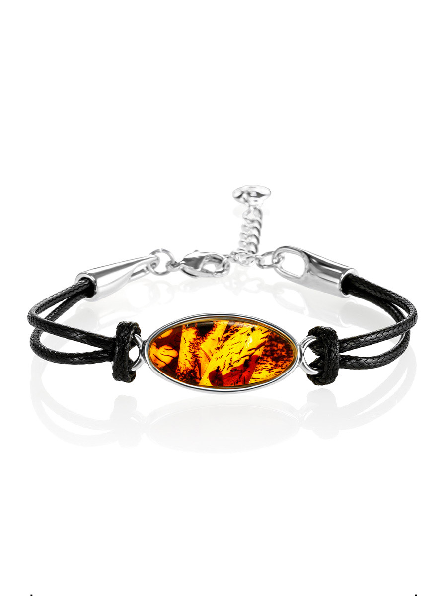 Браслет «Сильверстоун» с янтарной мозаичной вставкой