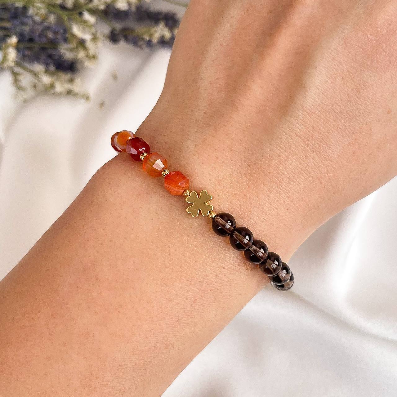 Радуга Самоцветов Браслет со вставкой "Клевер" из Раухтопаза и Сардоникса
