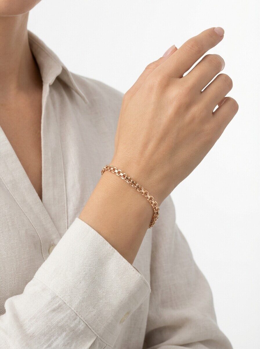 Этот красивый браслет изготовлен из специального гипоаллергенного ювелирного сплава, который затем покрывается золотом.