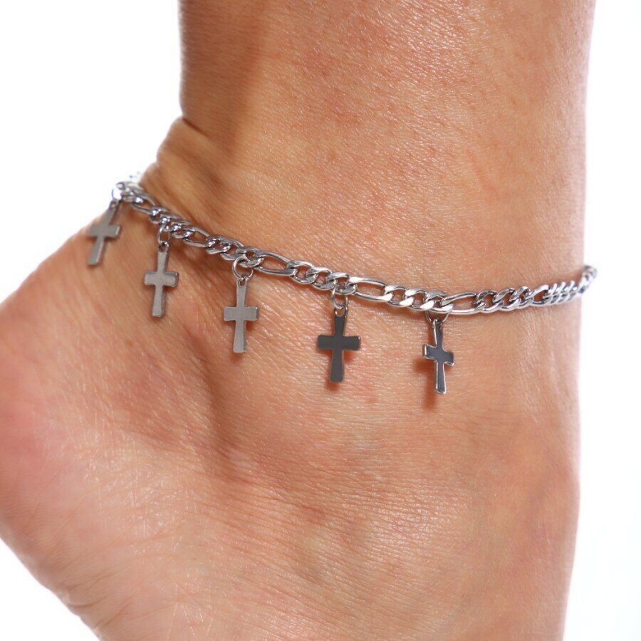 Браслет женский на ногу с крестиками, цвет: серебристый, арт. 018.477