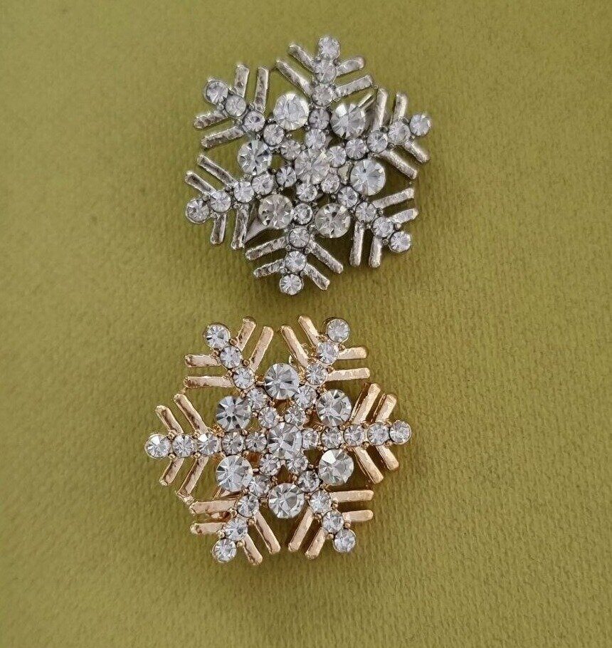 Отзывы и вопросы о товаре «Брошь комплект из двух снежинок, цвет серебристый и золотистый, камень белый, арт.748.375»