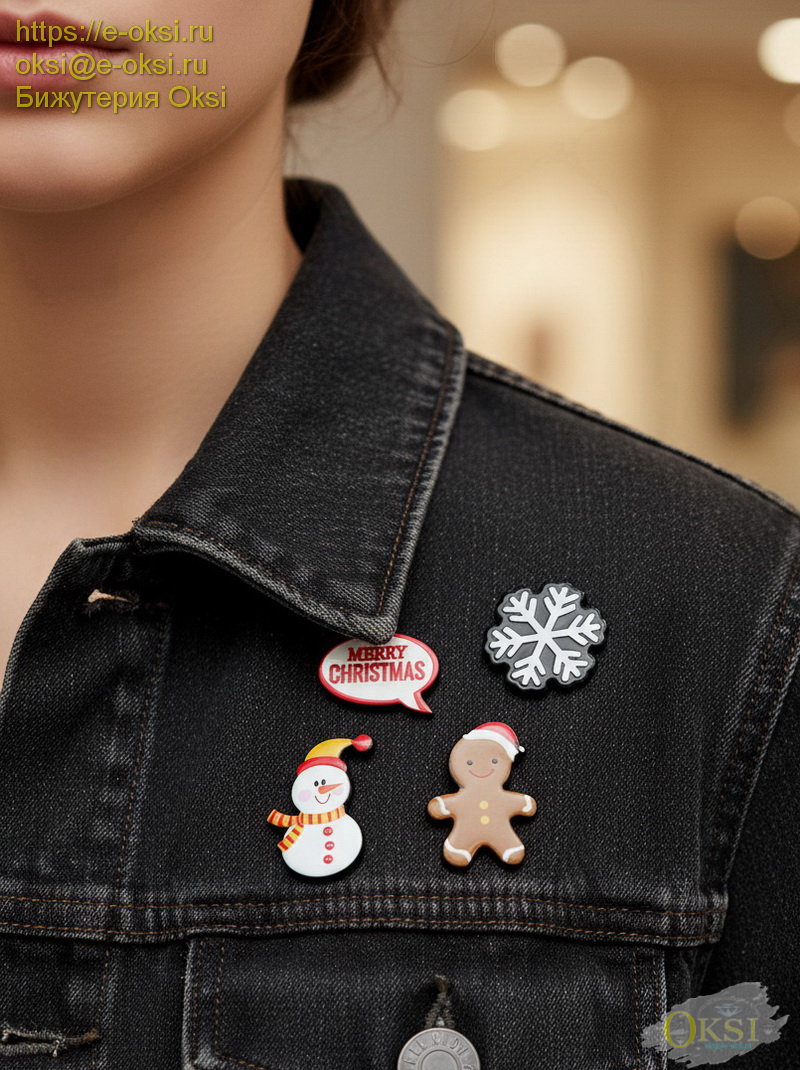 Цена за 4 штуки. Новогодние броши на застежке - кнопке. Размер 1 броши:снеговик 4 см х 2,5 см., пряник 3,5 см х 2,5 см.,значок 2,2 см х 2,5 см.,снежинка 2,5 см х 2,5 см.