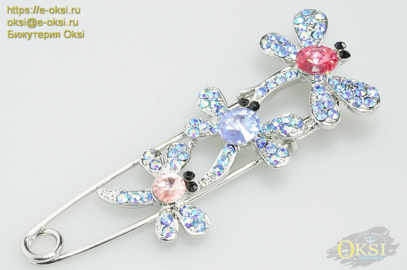 Очень красивая крупная брошь -булавка «Стрекоза» украшена сверкающими австрийскими кристаллами. Качественное родиевое покрытие серебряного цвета. Фото не передает блеска и красоты украшения. Размер - 8 см. х 3,5 см.