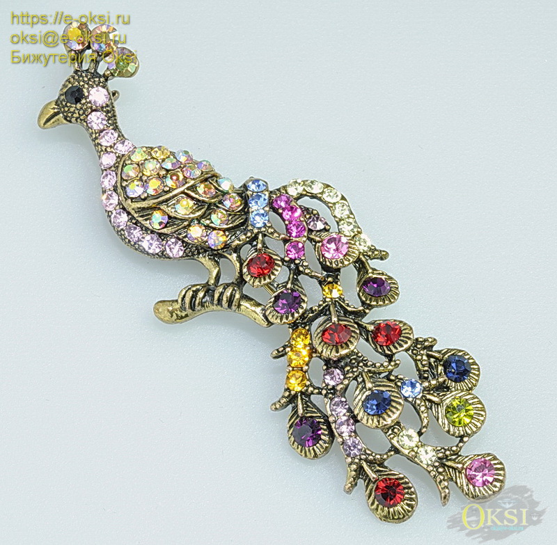 Крупная брошь «Жар-птица» украшена сверкающими кристаллами разных оттенков , подходит под любой цвет одежды. Славянский оберег - талисман. Украшения с '' Жар птицей '' служат защитой от сглаза, неудачи и опасностей.Качественное гальваническое покрытие. Размер броши 9 см. х 3 см.