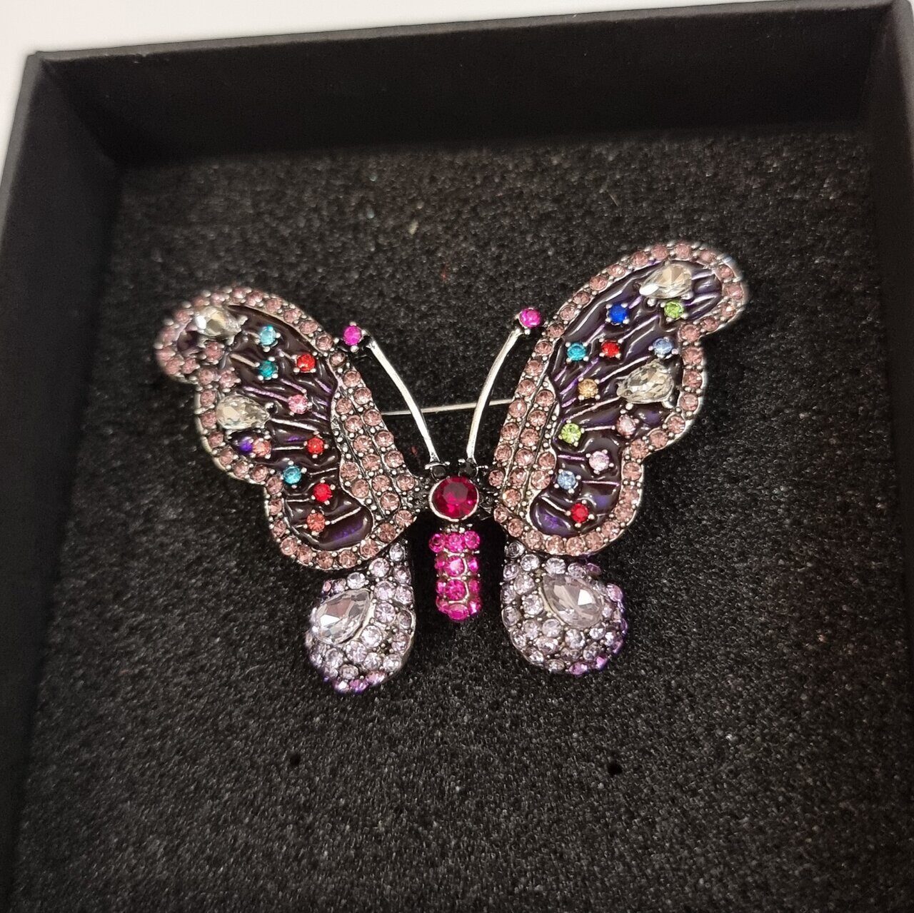 Брошь Бабочка с цветными стразами и фиолетовой эмалью, арт. 748.318