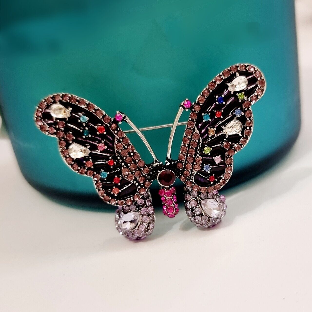Описание Брошь " Бабочка" выполнена из высококачественного бижутерного сплава. Украшена стразами различных размеров и цветов для ваших стильных образов, которые непременно привлекут к себе внимание. Состав: бижутерный сплав (металл). Вставки: разноцветные стразы и фиолоетовая эмаль. Размер броши: 4х5,5 см.