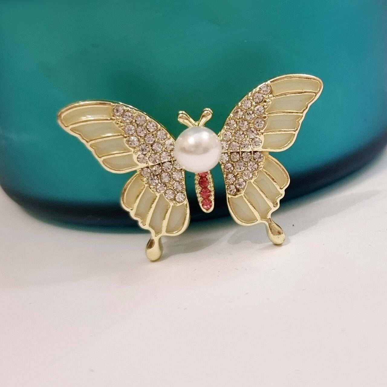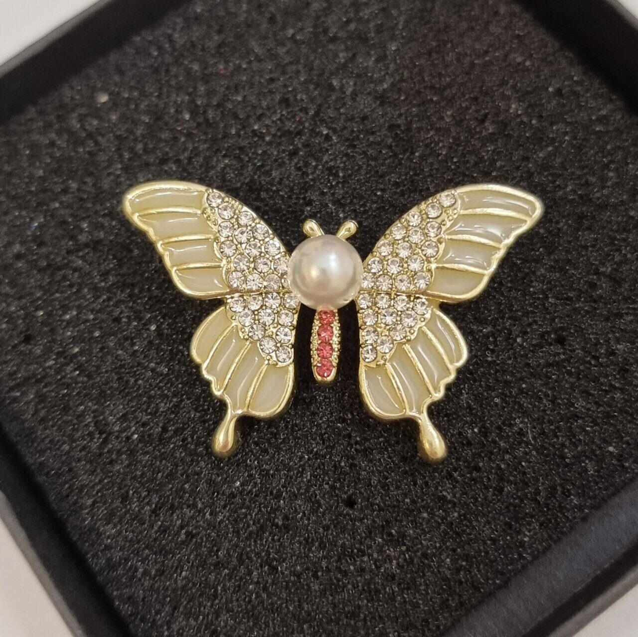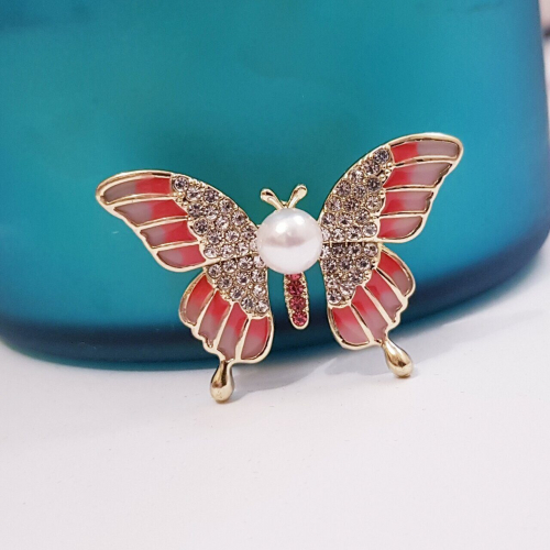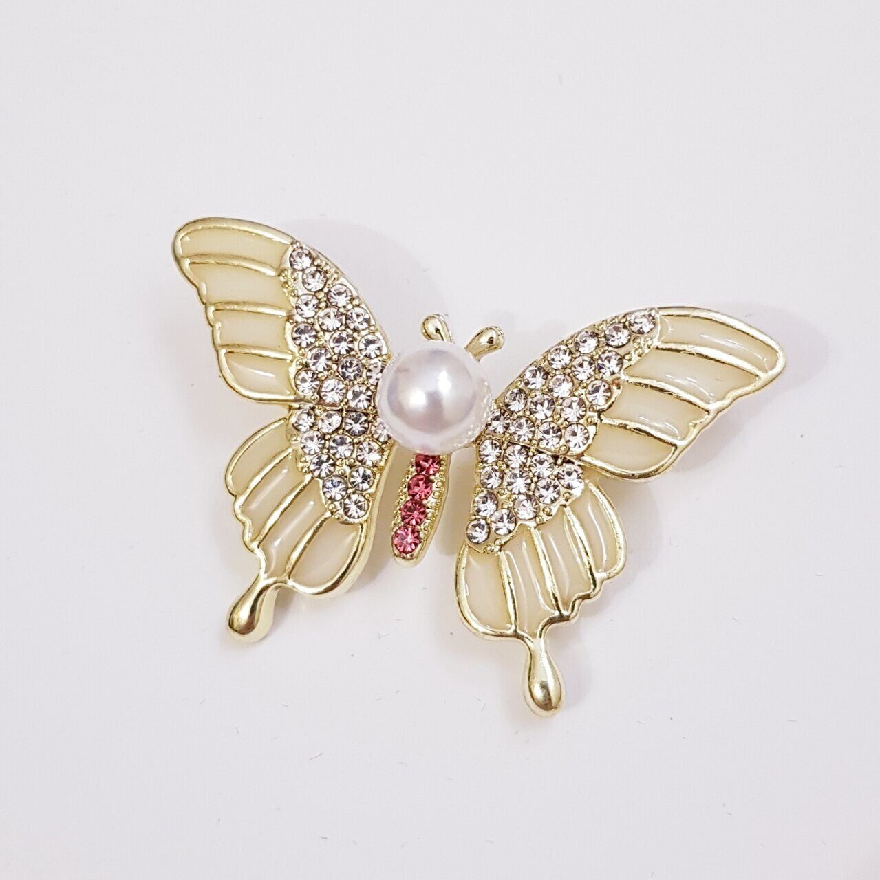 Брошь Бабочка с жемчугом, цвет белый, арт.748.288