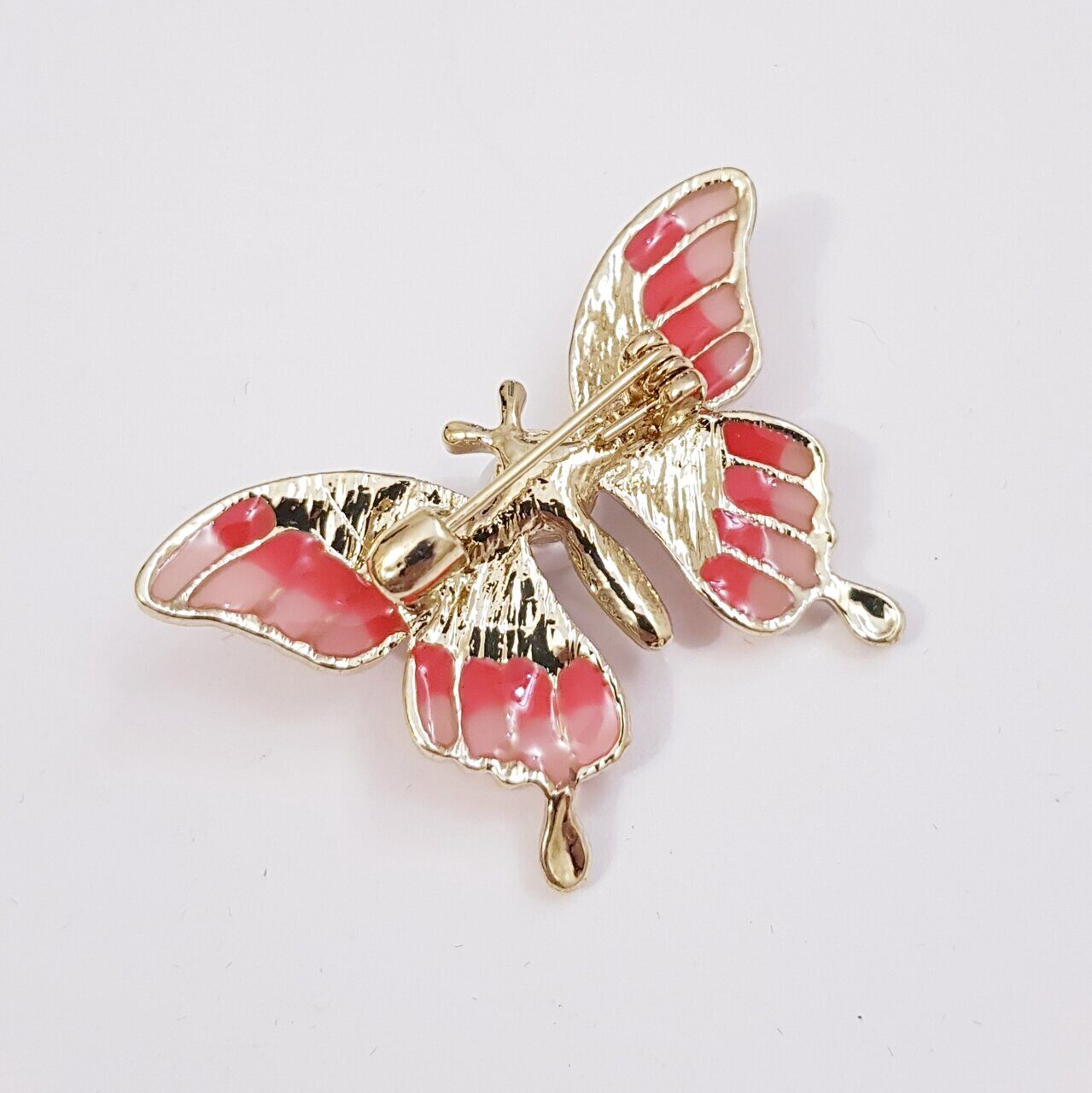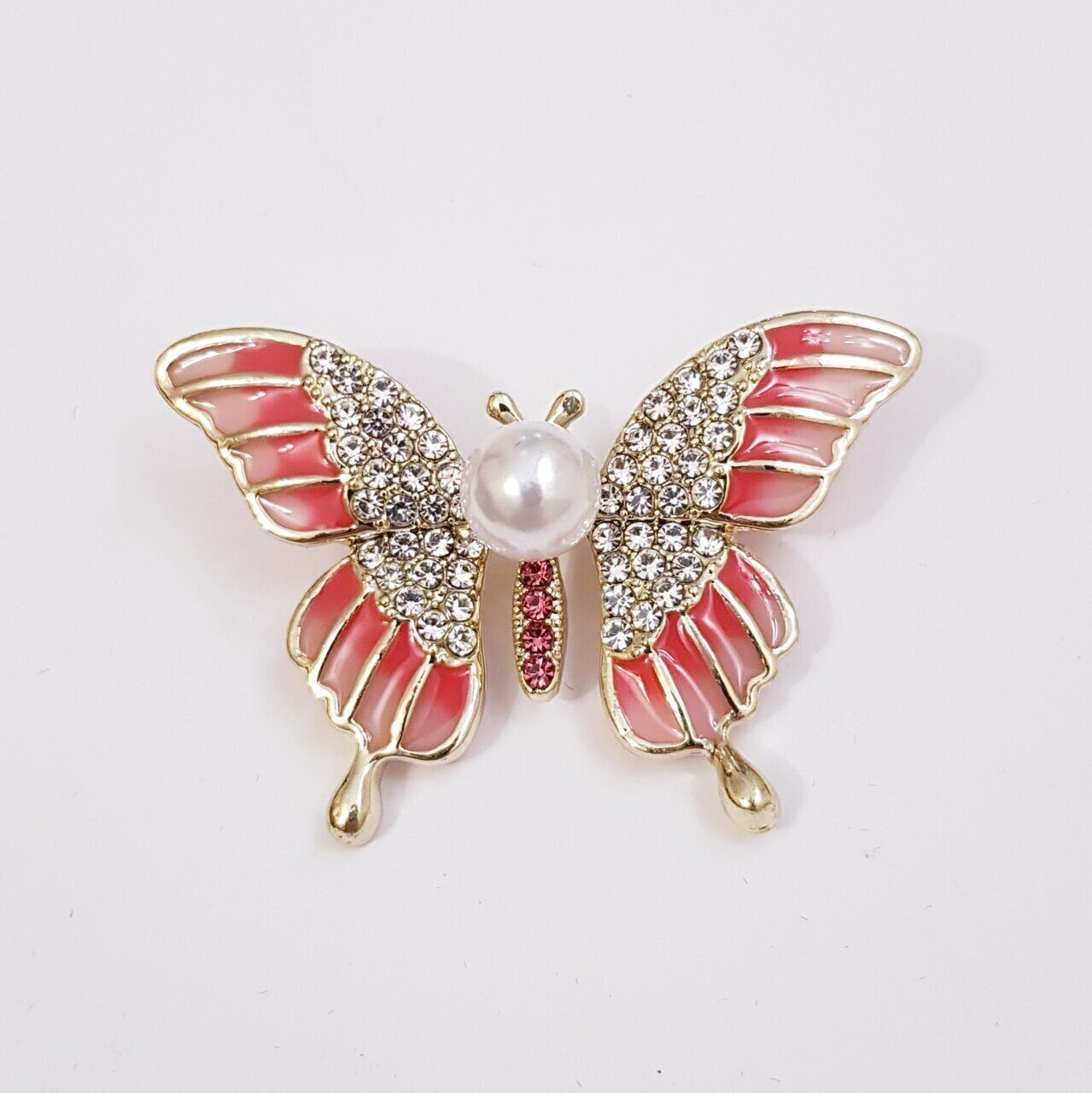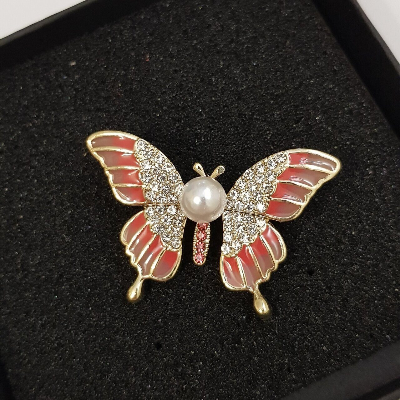 Брошь Бабочка с жемчугом, цвет розовый, арт.748.289