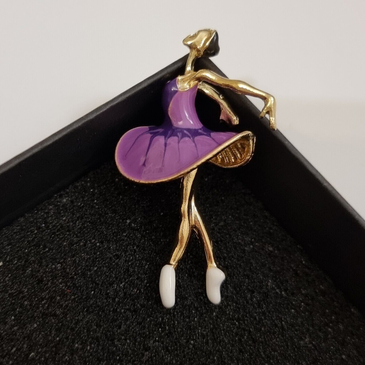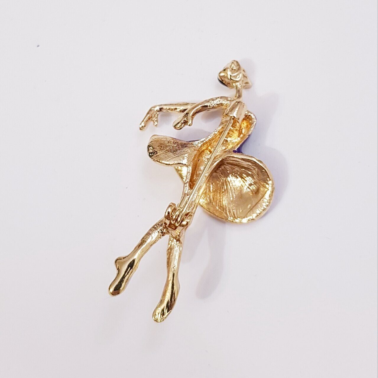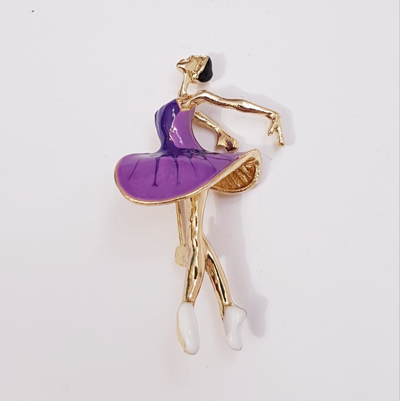 Описание Брошь-булавка в виде балерины с цветной эмалью для ваших безупречных образов. Такая брошь женская бижутерия станет замечательным подарком себе и своим родным. Состав: бижутерный сплав (металл). Вставки: фиолетовая эмаль. Размер броши: 5,5х3 см.