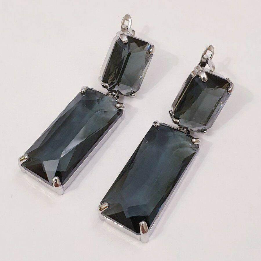 Серьги посеребрение, камень крупный черный, 201521, Уценка, арт. 08.1191