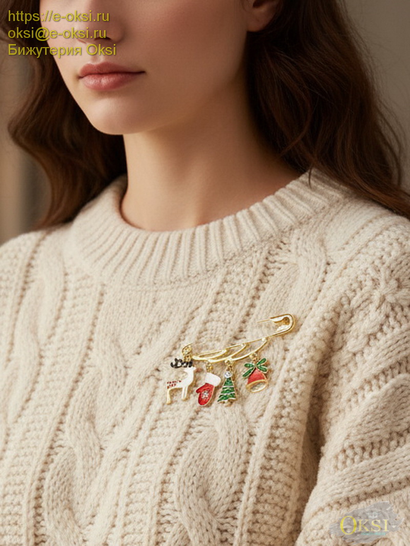 Яркая, эффектная брошь - булавка '' Новый год.''. Качественное гальваническое покрытие золотого цвета, ювелирная эмаль, сверкающие кристаллы. Красивый и недорогой подарок к новому году, рождеству. Длина булавки 6,4 см.