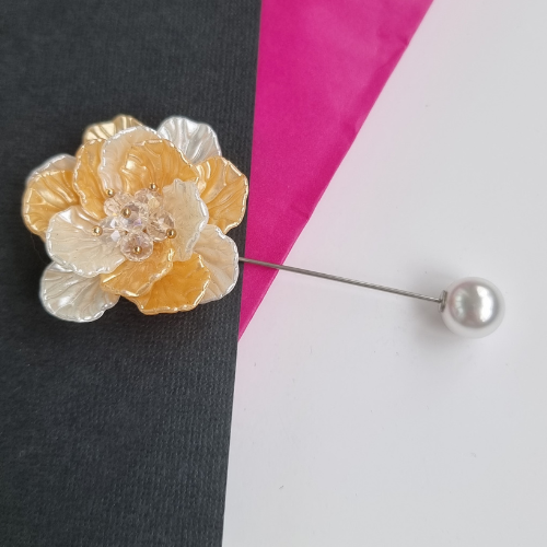 Описание Брошь " Цветы". Оригинальный дизайн брошки в виде цветка подчеркнет индивидуальный образ каждой леди. Брошка женская бижутерная – одно из немногих уникальных украшений, которое подходит всем без исключения. Брошь делает любой образ легким и утонченным. Брошь прекрасно подойдет на платье, пиджак, свитер, пальто, шапку. Можно подарить как подарок маме, подруге, коллеге, сестре, девушке, ну и конечно себе любимой! Размер: 9х4,5 см. Крепление: игла. Материал: бижутерный сплав, пластик, стразы, эмаль. Вес: 10 гр.