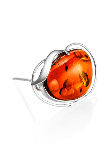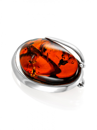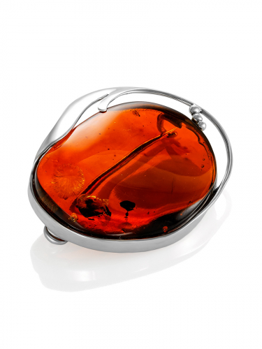 Брошь из натурального искрящегося янтаря коньячного цвета