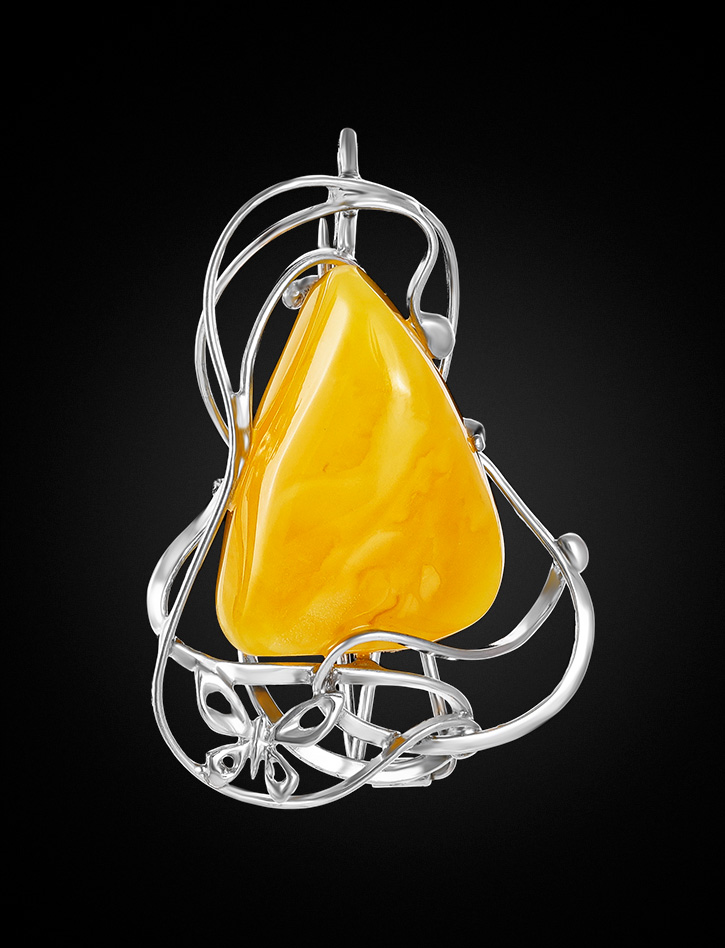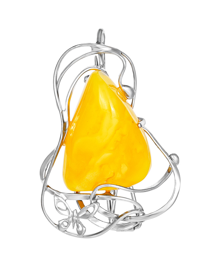 Брошь-кулон из натурального янтаря ярко-медового цвета «Венето»