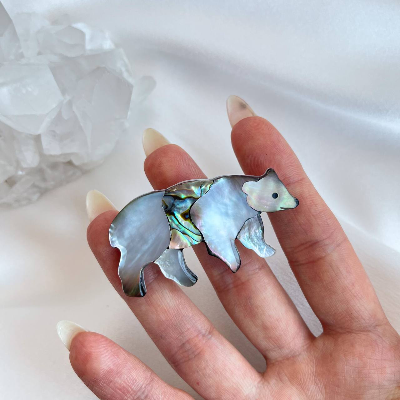 Радуга Самоцветов Брошь "Медведь" Халиотис, Перламутр