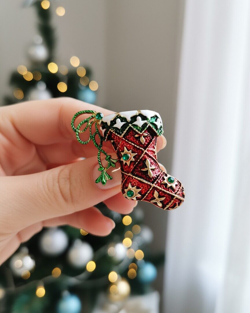 Брошь станет прекрасным дополнением к вечернему наряду или праздничному костюму, придав вашему образу изысканность и шарм. Она обязательно привлечёт внимание и подарит ощущение настоящего новогоднего волшебства.