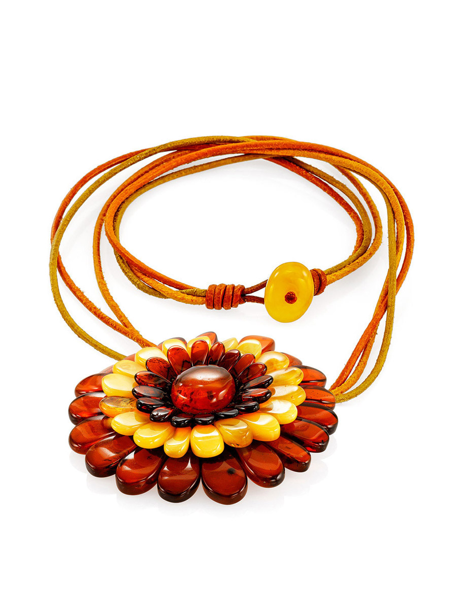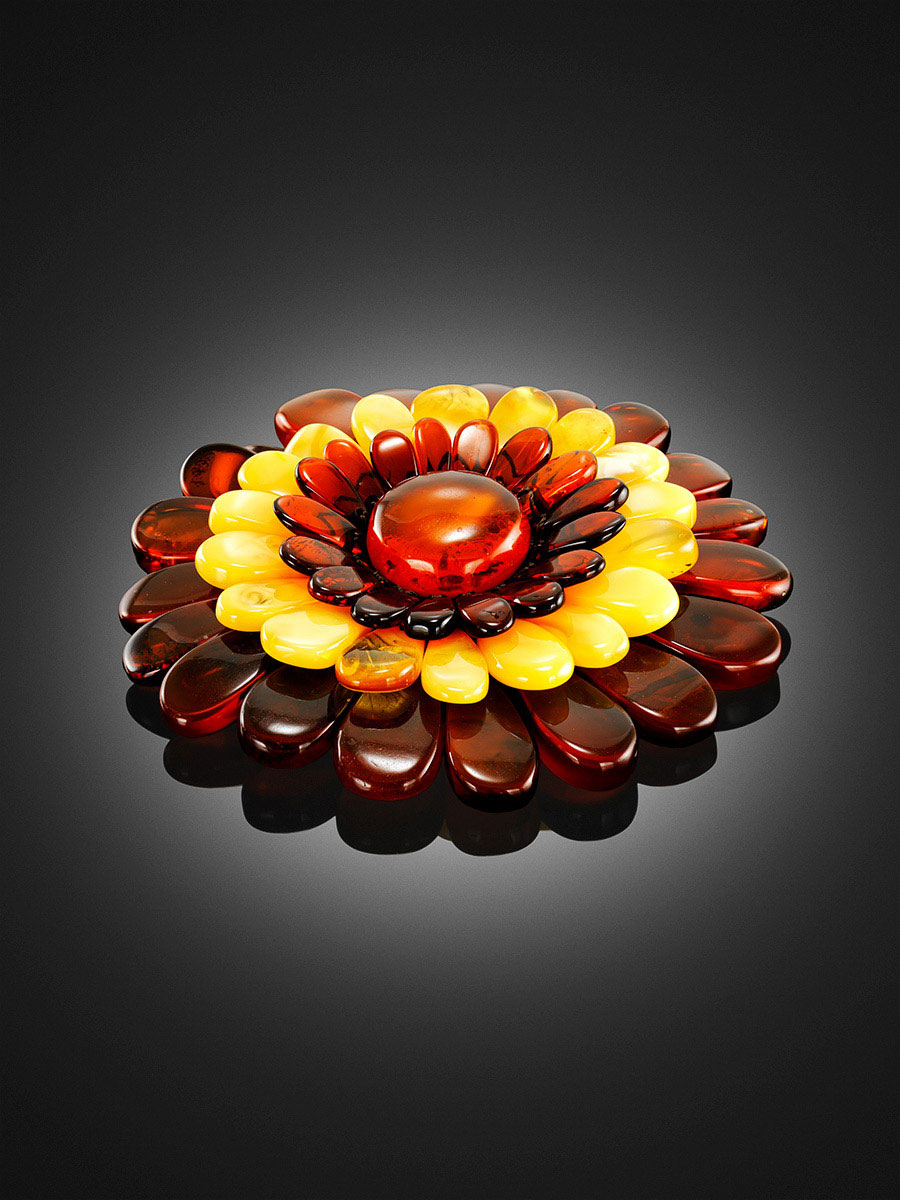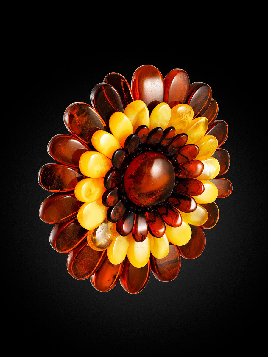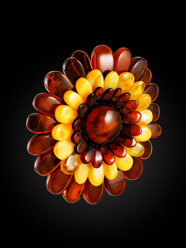 Брошь-подвеска из натурального балтийского янтаря разных оттенков «Хризантема»