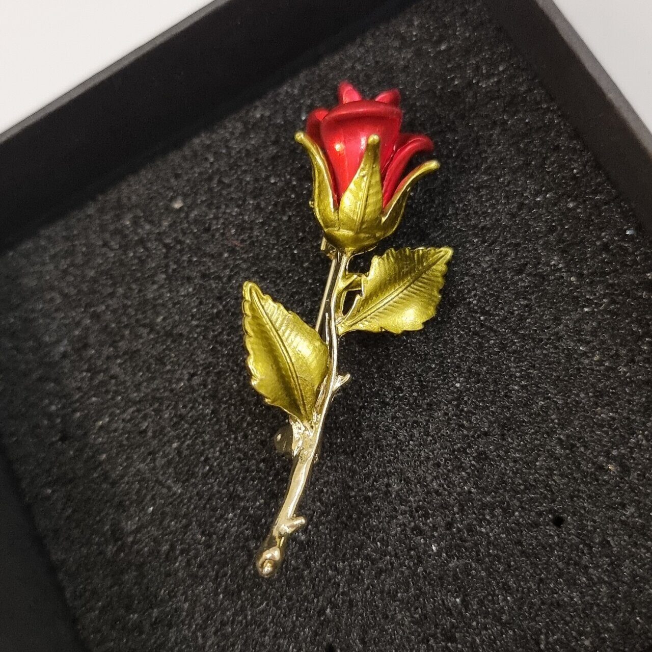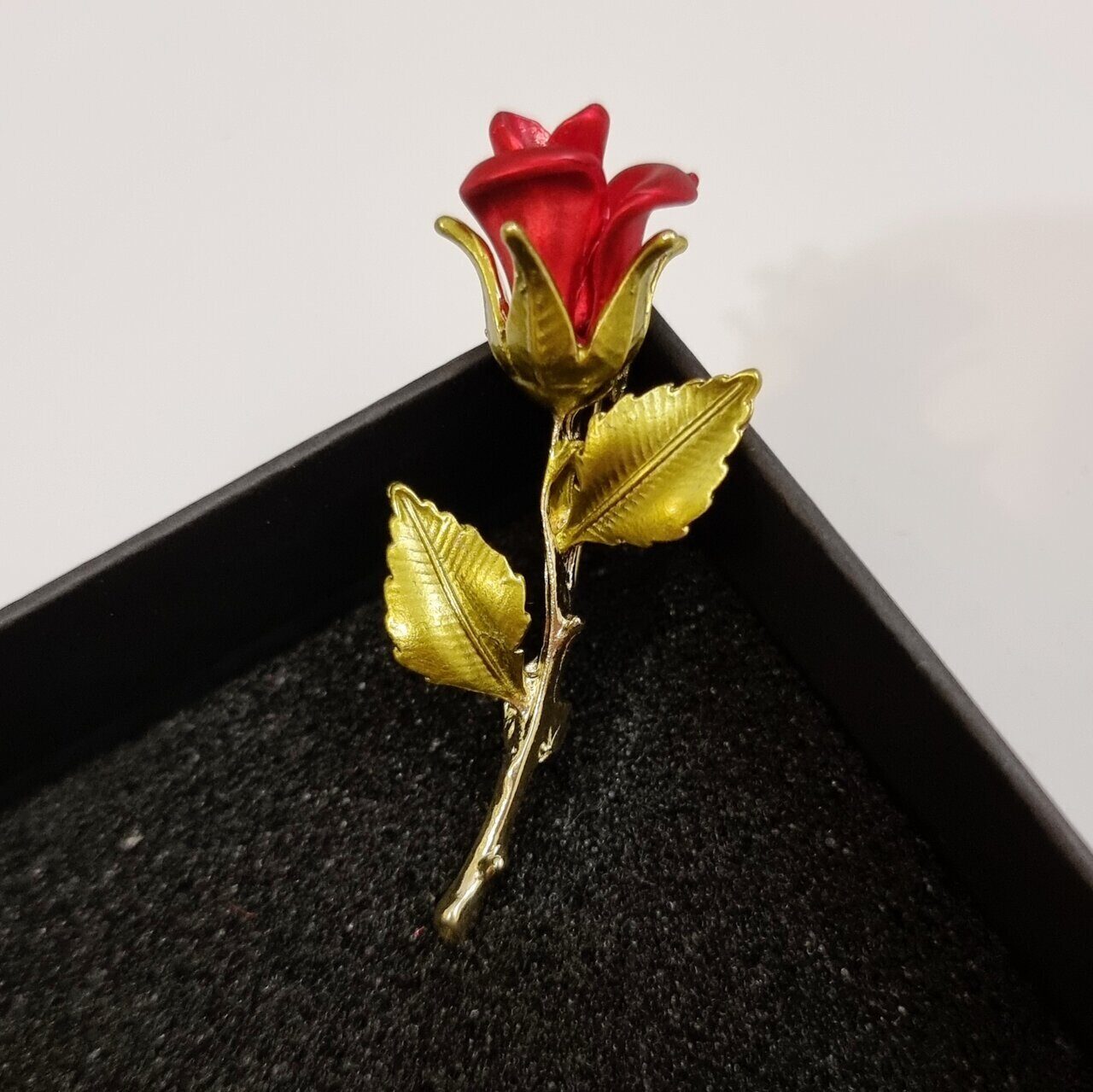 Описание Брошь-булавка в виде розы с матовой эмалью для ваших безупречных образов. Такая брошь женская бижутерия станет замечательным подарком себе и своим родным. Состав: бижутерный сплав (металл). Вставки: красная эмаль. Размер броши: 5,5х2,5 см.