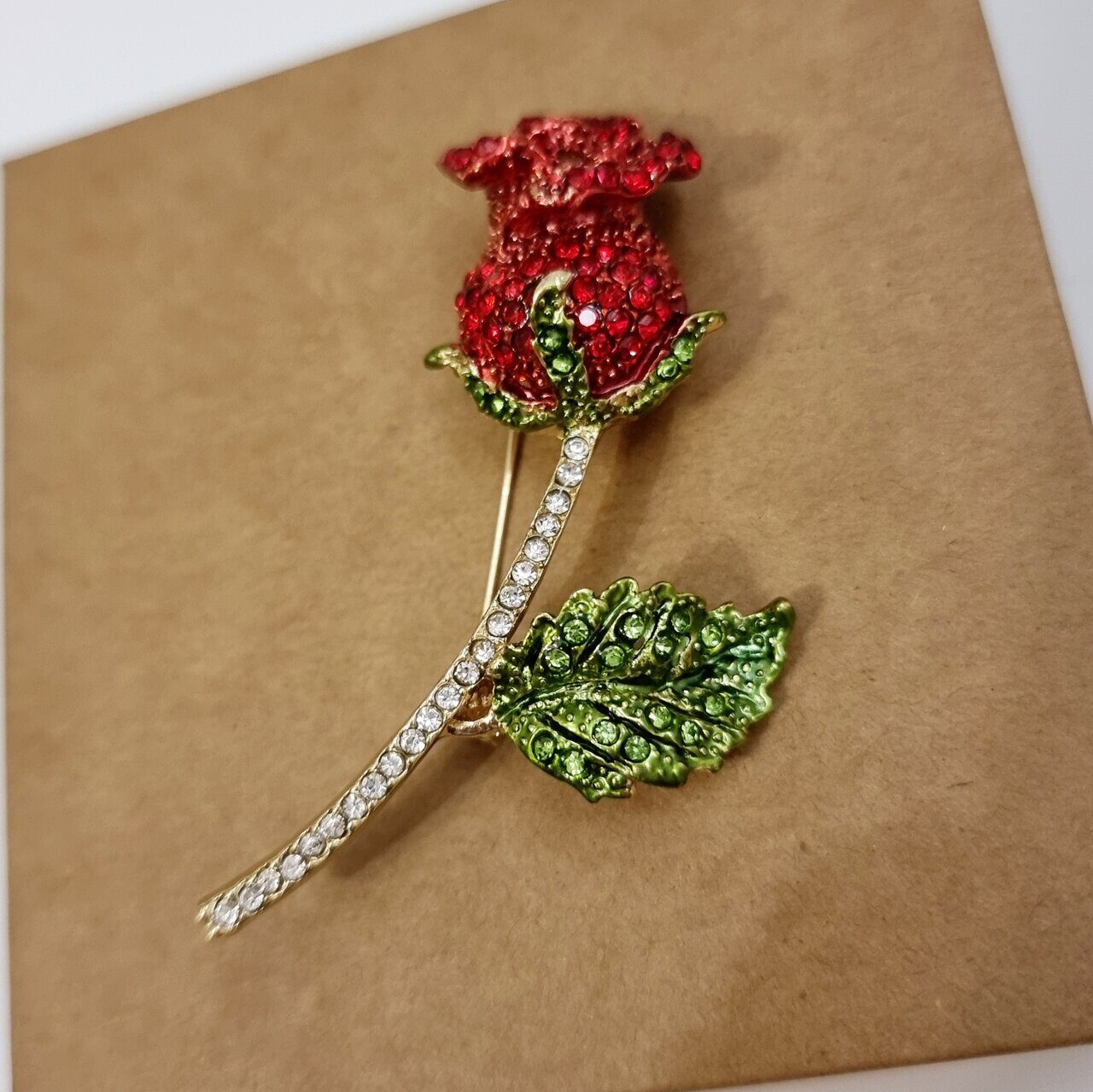 Описание Брошь-булавка в виде розы с цветными камнями для ваших безупречных образов. Такая брошь женская бижутерия станет замечательным подарком себе и своим родным. Состав: бижутерный сплав (металл). Вставки: красные, зеленые и прозрачные камни. Размер броши: 6,5х2,5 см.