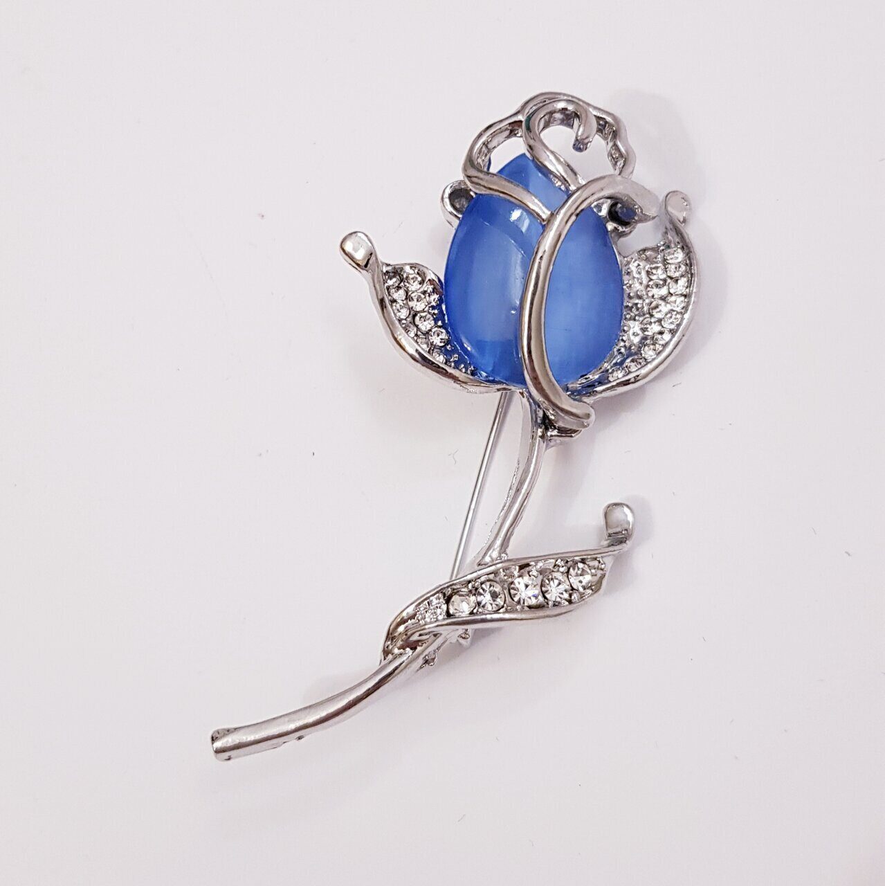 Брошь Роза со стразами, цвет голубой, арт. 748.297