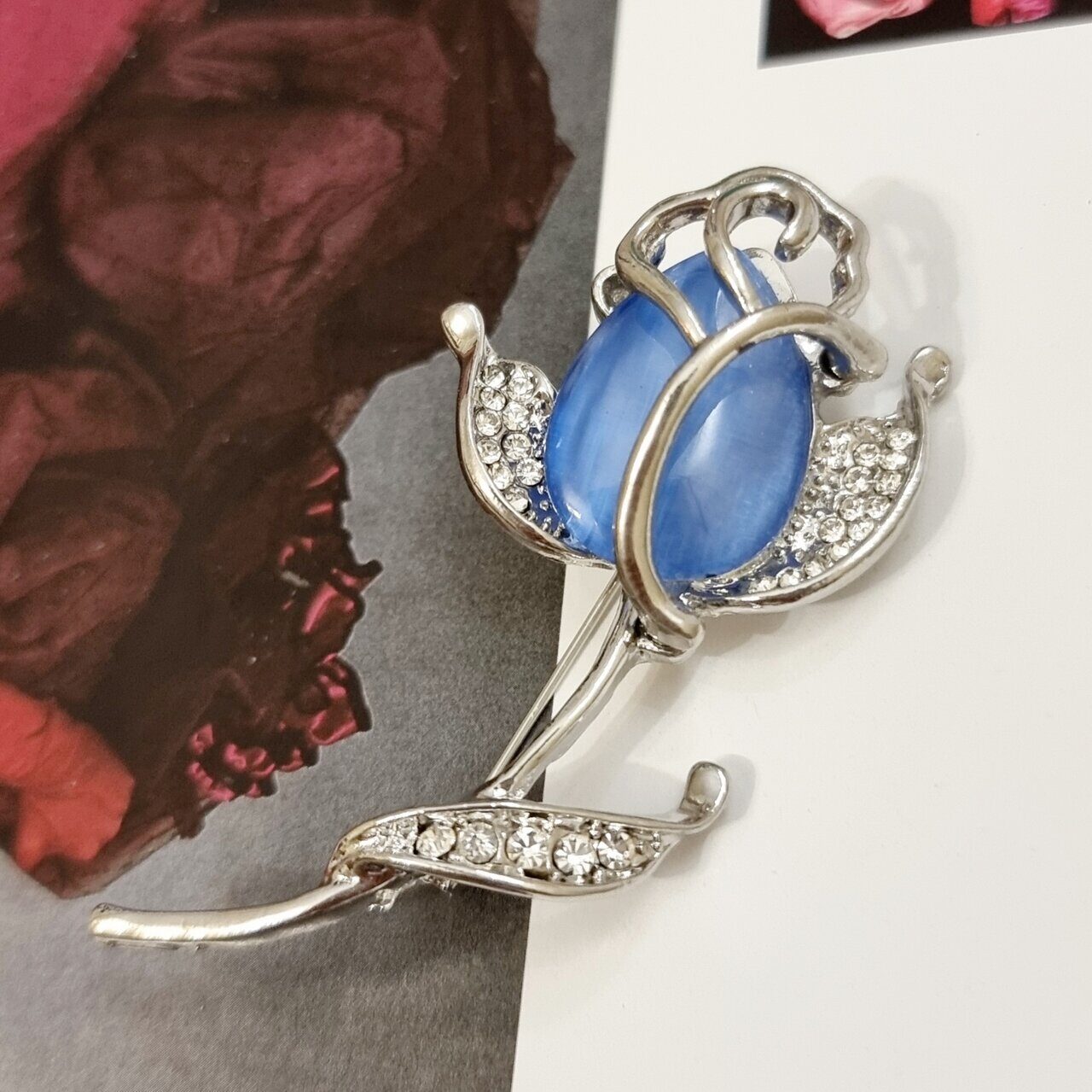 Описание Брошь-булавка в виде розы с камнями, стразами для ваших безупречных образов. Такая брошь женская бижутерия станет замечательным подарком себе и своим родным. Состав: бижутерный сплав (металл). Вставки: розовый камень, прозрачные стразы. Размер броши: 6,5х3 см.