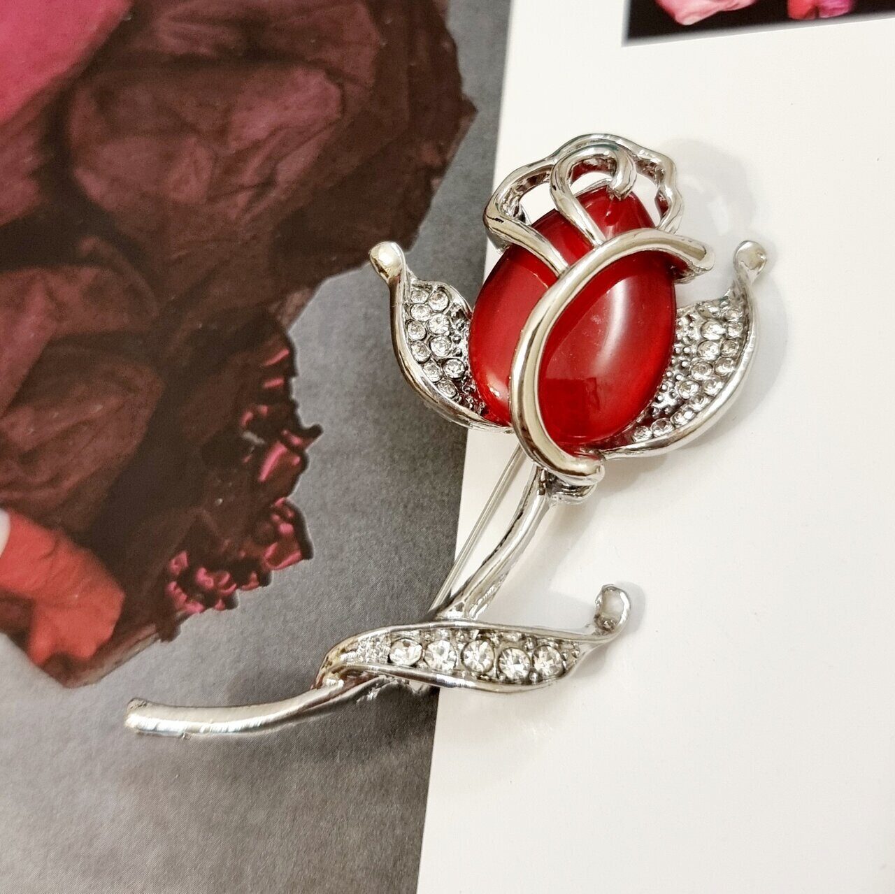 Описание Брошь-булавка в виде розы с камнями, стразами для ваших безупречных образов. Такая брошь женская бижутерия станет замечательным подарком себе и своим родным. Состав: бижутерный сплав (металл). Вставки: розовый камень, прозрачные стразы. Размер броши: 6,5х3 см.