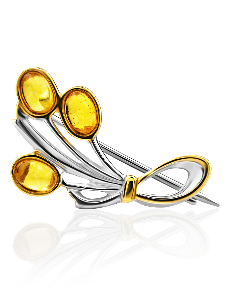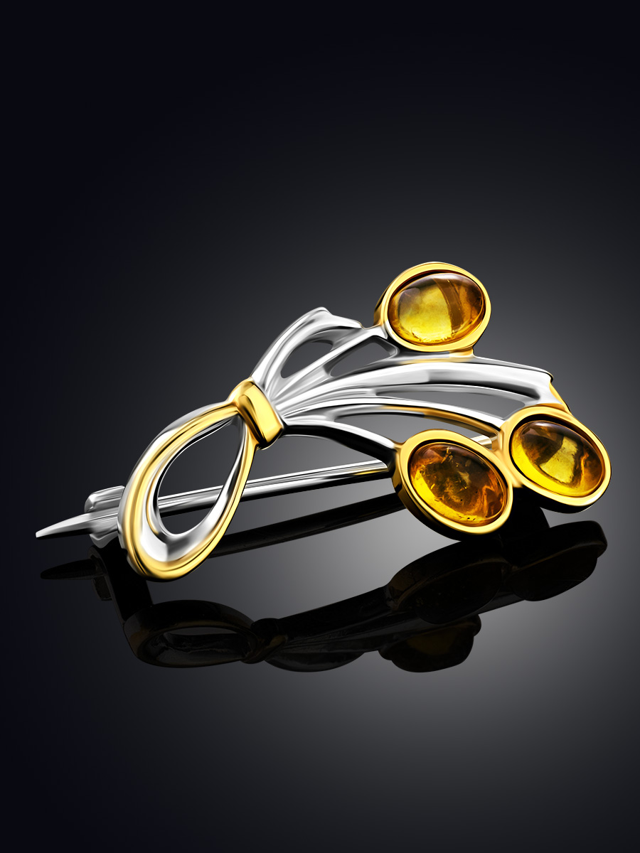 Брошь «Триумф» с натуральным золотистым янтарём